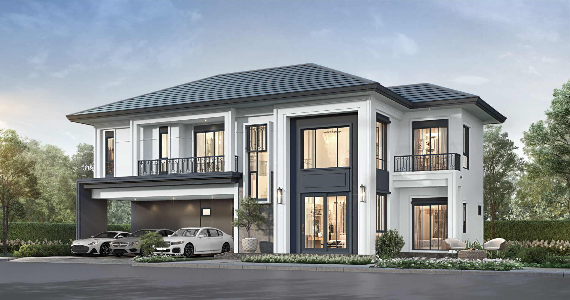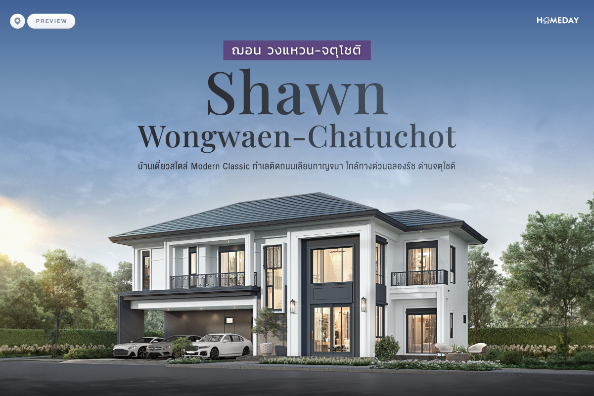 "ฌอน วงแหวน-จตุโชติ (Shawn Wongwaen-Chatuchot) บ้านเดี่ยวสไตล์ Modern Classic ความงามที่ผสมผสานระหว่างสไตล์คลาสสิคที่มีความละเมียดละไม ใส่ใจในรายละเอียด มีสัดส่วนที่สมดุล กับสไตล์โมเดิร์นที่มีองค์ประกอบเรียบง่าย ร่วมสมัย ทําให้เกิดเป็นลักษณะเด่นของสไตล์โมเดิร์น คลาสสิค"