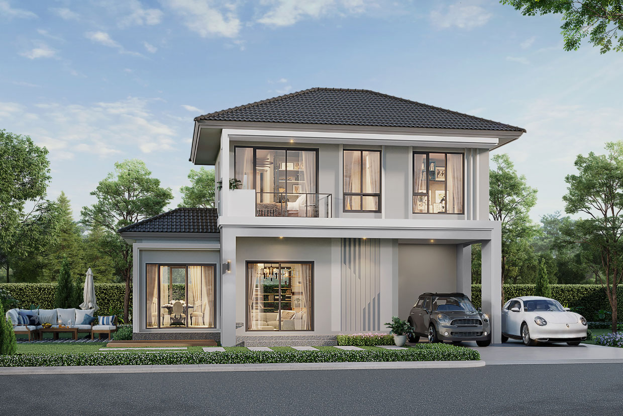 สถานพยาบาลรพ.ค่ายวชิราวุธรพ.นครินทร์รพ.มหาราช สถานศึกษารร.เบญจมราชูทิศรร.ศรีธรรมราชศึกษา ห้างสรรพสินค้าเซ็นทรัล พลาซาโรบินสันอินเด็กซ์ ลิฟวิ่งมอลล์ แบบบ้าน : TYPE ALEXIA