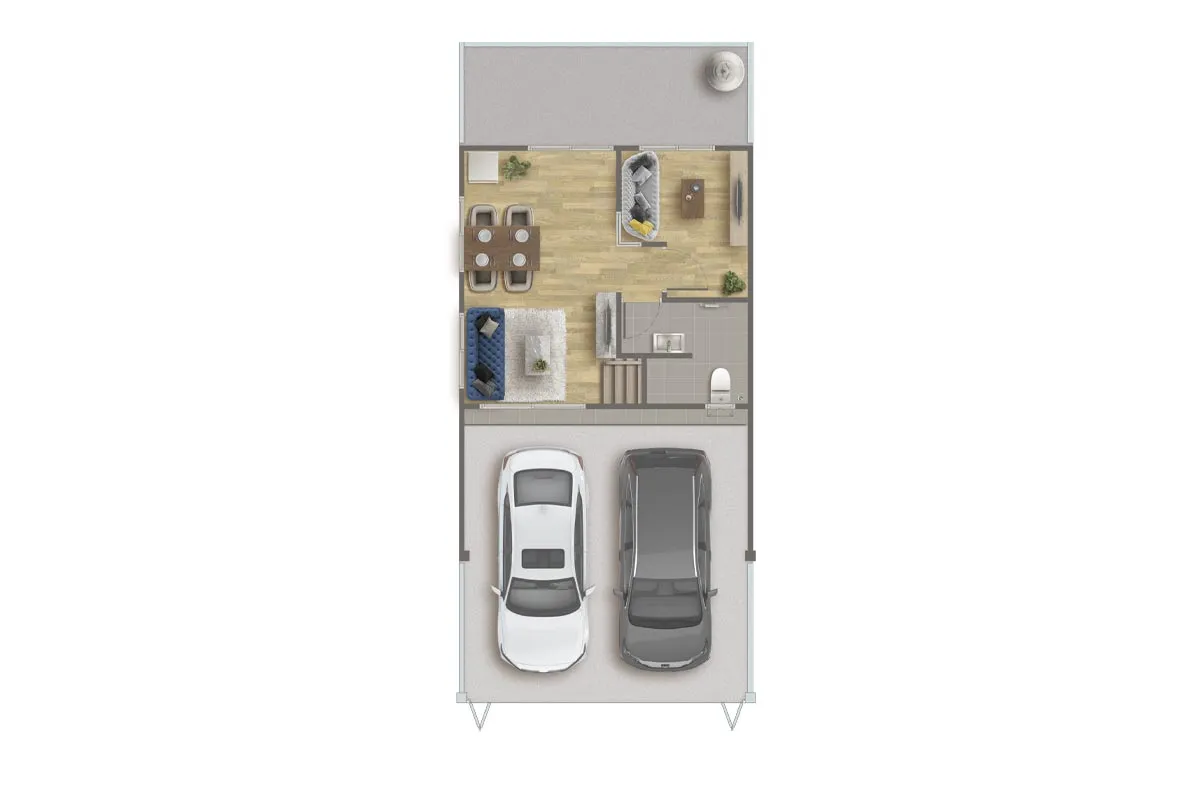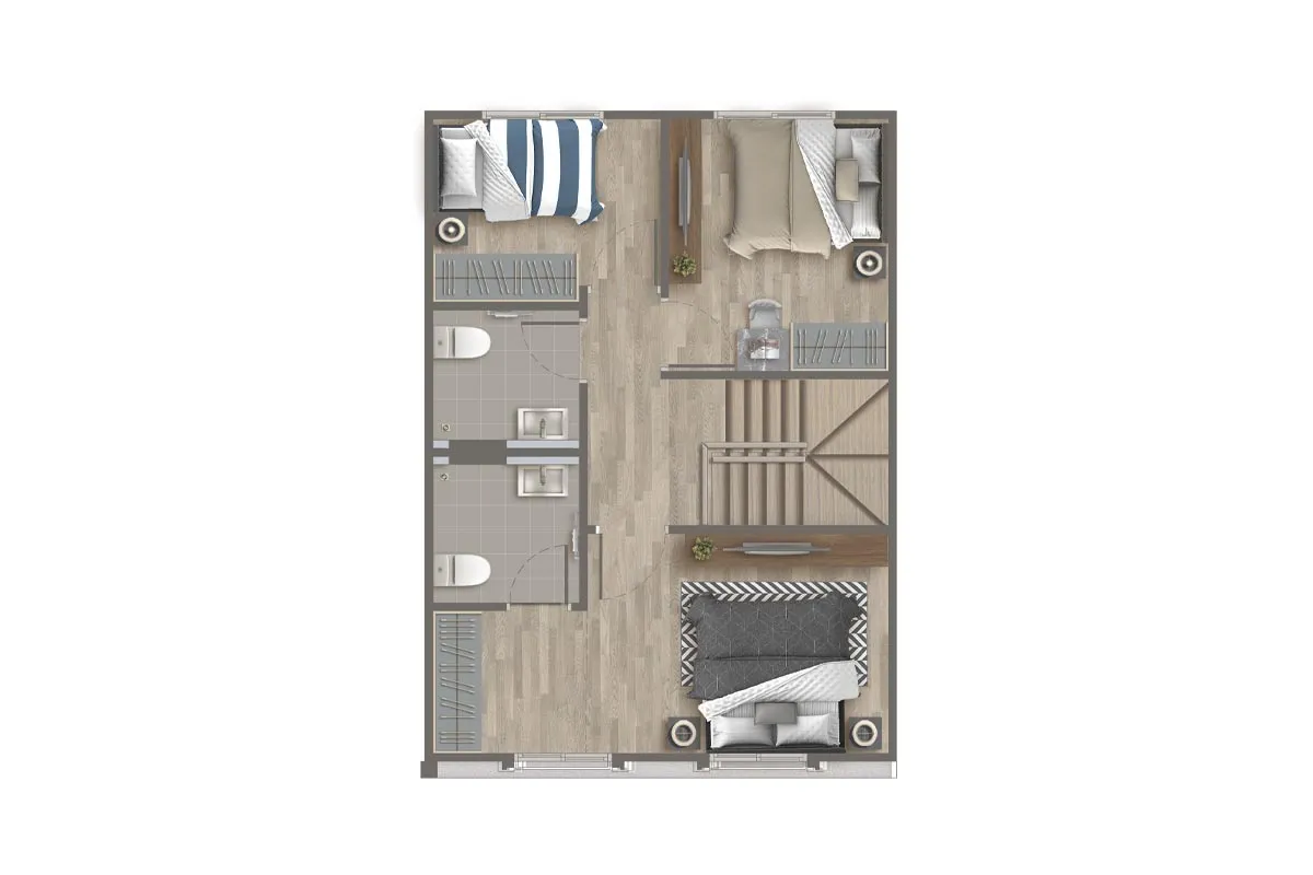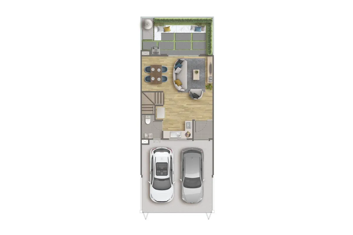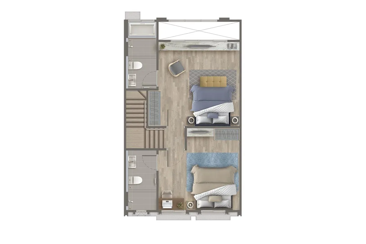 พื้นที่ใช้สอย 99 ตร.ม. 2 ห้องนอน 3 ห้องน้ำ 1 ห้องรับแขก ห้องอเนกประสงค์ ส่วนรับประทานอาหาร ที่จอดรถ 1 คัน พร้อม 1 ส่วน ซักล้าง