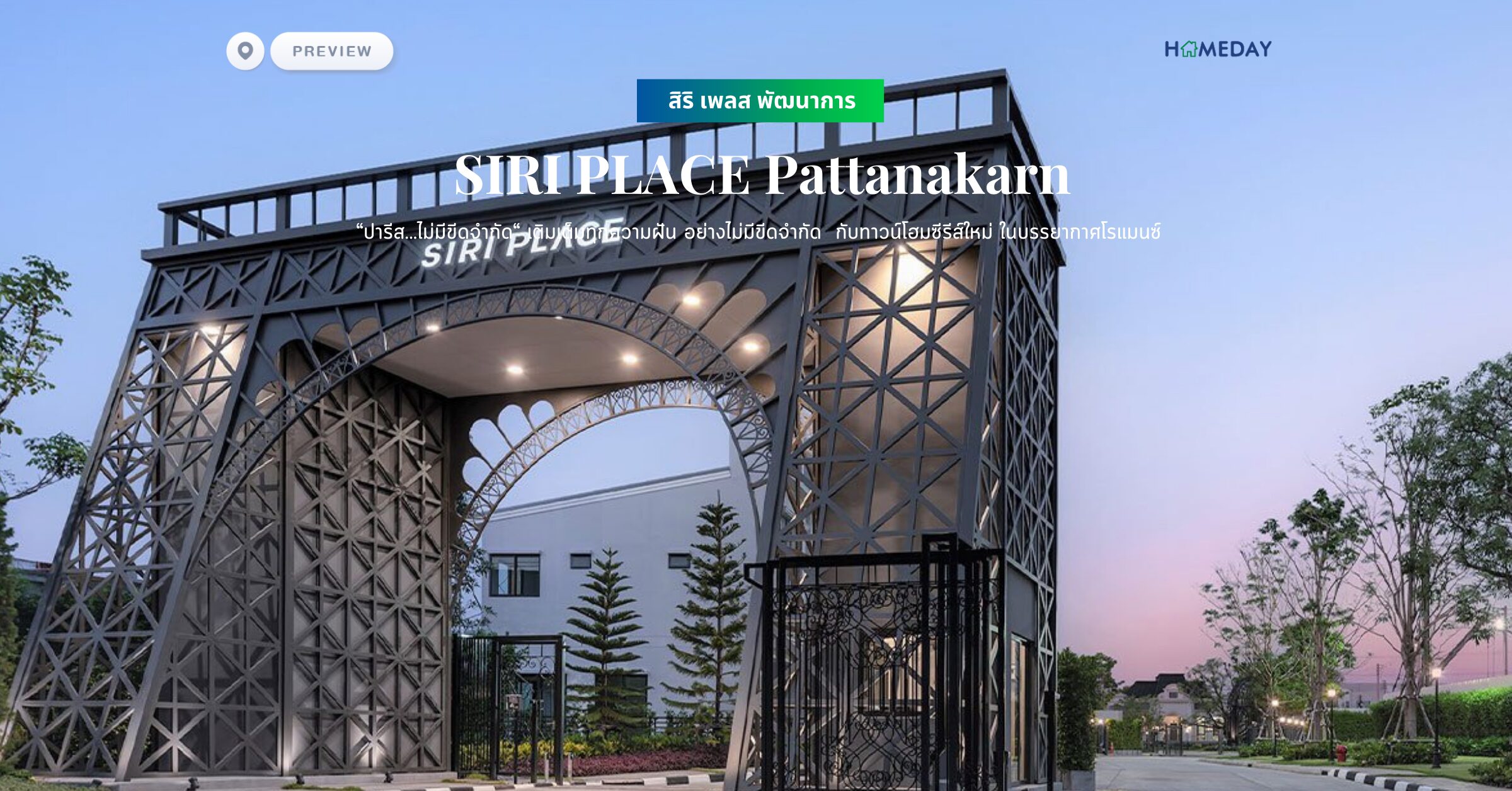 "โครงการ สิริ เพลส พัฒนาการ (SIRI PLACE Pattanakarn) “ปารีส…ไม่มีขีดจำกัด“ เติมเต็มทุกความฝัน อย่างไม่มีขีดจำกัด กับทาวน์โฮมซีรีส์ใหม่ ในบรรยากาศโรแมนซ์ ที่ได้รับแรงบันดาลใจจากเมืองสุดโรแมนติกอย่าง Paris เติมเต็มความปรารถนาของคุณอย่างไร้ขีดจำกัด หนึ่งในซีรีส์ Dream Destination ที่จะทำให้คุณได้กลายเป็นชาว Parisian อย่างแท้จริง"