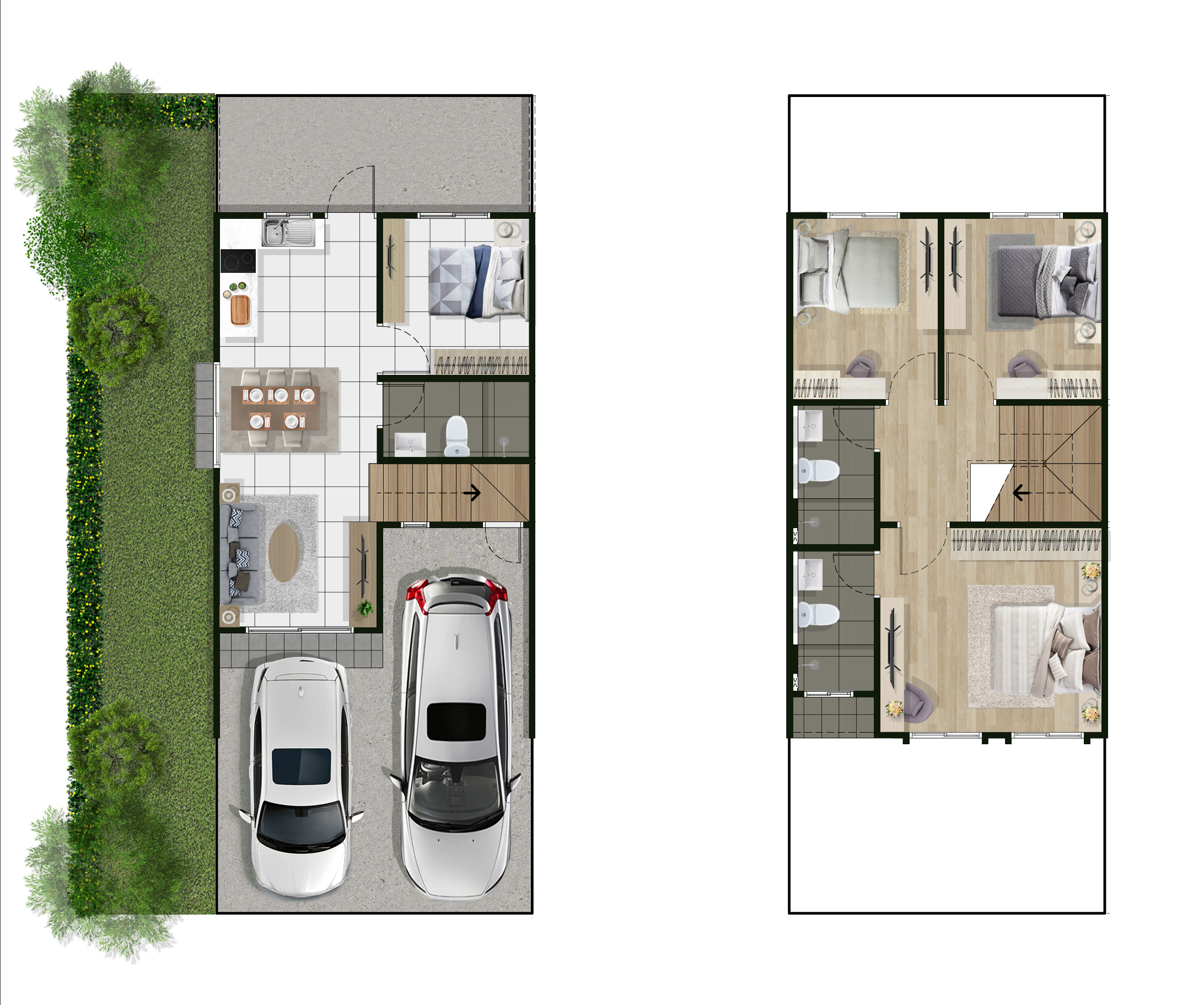 แบบบ้าน : นทีดล ทาวน์โฮม 2 ชั้น 2 ห้องนอน 2 ห้องน้ำ 1 ที่จอดรถ หน้ากว้าง 4.5 เมตร พื้นที่ดิน 16.3 ตร.วา ขึ้นไป พื้นที่ใช้สอยในบ้าน 101 ตร.ม แบบบ้าน : นภาดล