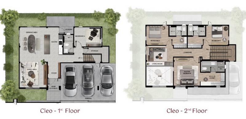 • แบบบ้าน CLEO | บ้านเดี่ยว 2 ชั้น ที่ดินเริ่มต้น 54 ตร.ว. พื้นที่ใช้สอย 228 ตร.ม. ฟังก์ชันบ้าน 4 ห้องนอน, 4 ห้องน้ำ, 1 ห้องรับแขก, 1 ห้องอเนกประสงค์, 1 ห้องครัว, 1 ห้องเก็บของ และ 3 ที่จอดรถ