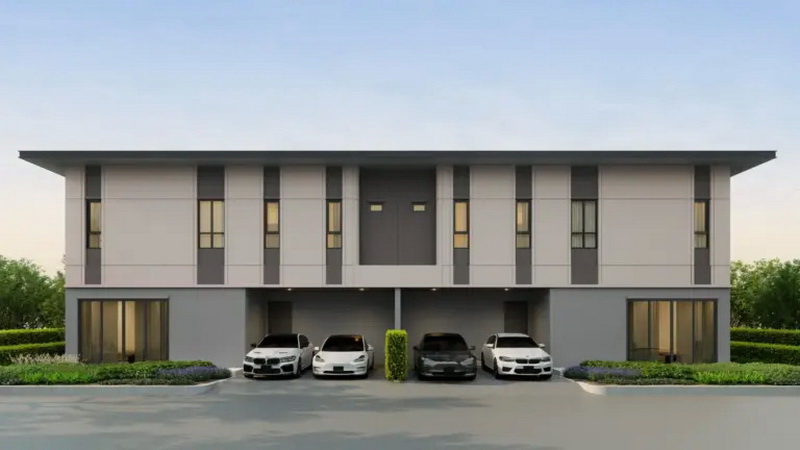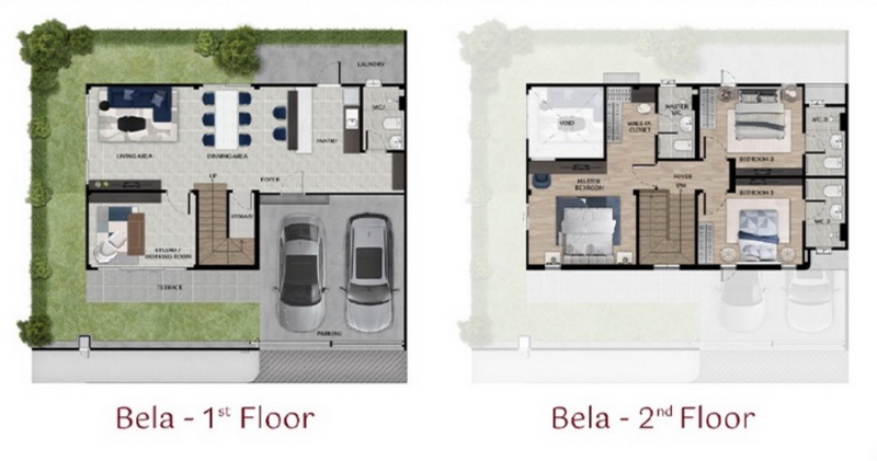 • แบบบ้าน BELA | บ้านแฝด 2 ชั้น ที่ดินเริ่มต้น 42 ตร.ว. พื้นที่ใช้สอย 180 ตร.ม. ฟังก์ชันบ้าน 3 ห้องนอน, 4 ห้องน้ำ, 1 ห้องรับแขก, 1 ห้องอเนกประสงค์, 1 ห้องครัว, 1 ห้องเก็บของ และ 2 ที่จอดรถ