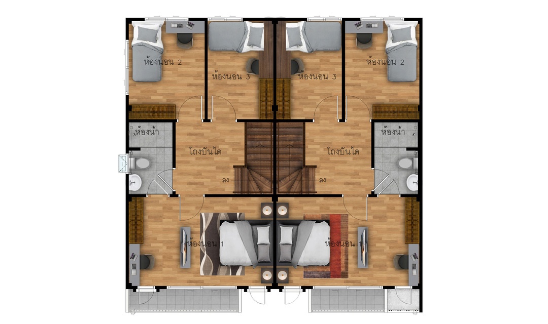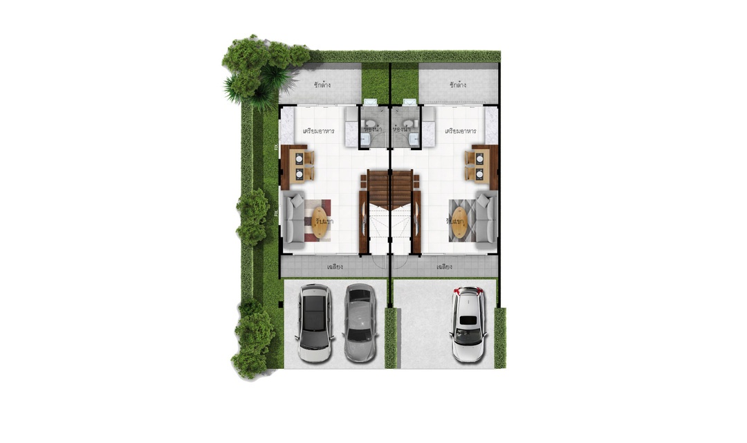 ขนาด 3 ห้องนอน 2 ห้องน้ำ และที่จอดรถ 2 คัน