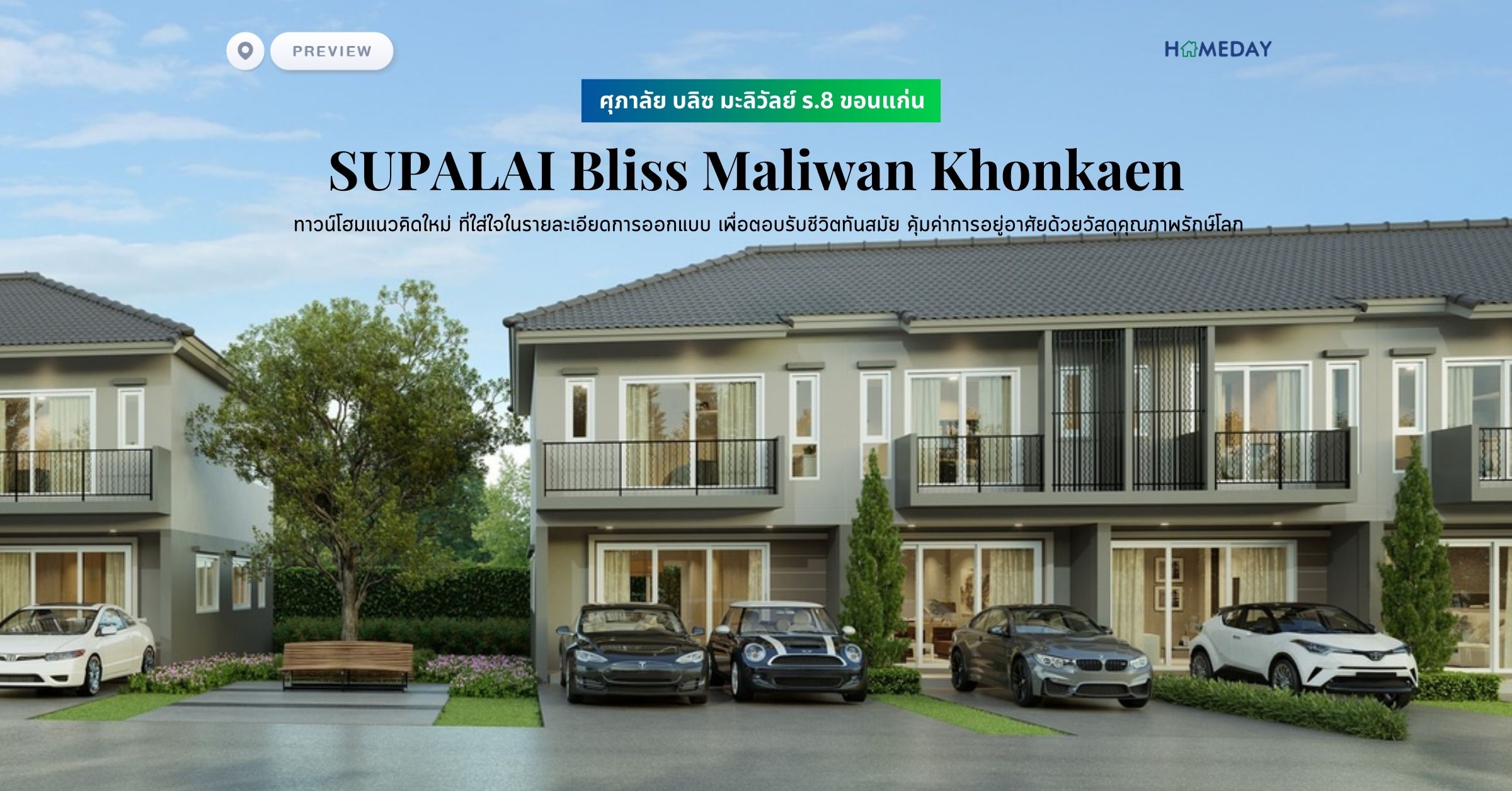 "โครงการ ศุภาลัย บลิซ มะลิวัลย์ ร.8 ขอนแก่น (SUPALAI Bliss Maliwan Khonkaen) ทาวน์โฮมแนวคิดใหม่ สไตล์โมเดิร์น ที่ใส่ใจในรายละเอียดการออกแบบ เพื่อตอบรับชีวิตทันสมัย และความต้องการของคุณได้อย่างลงตัว คุ้มค่าการอยู่อาศัยด้วยวัสดุคุณภาพรักษ์โลก"