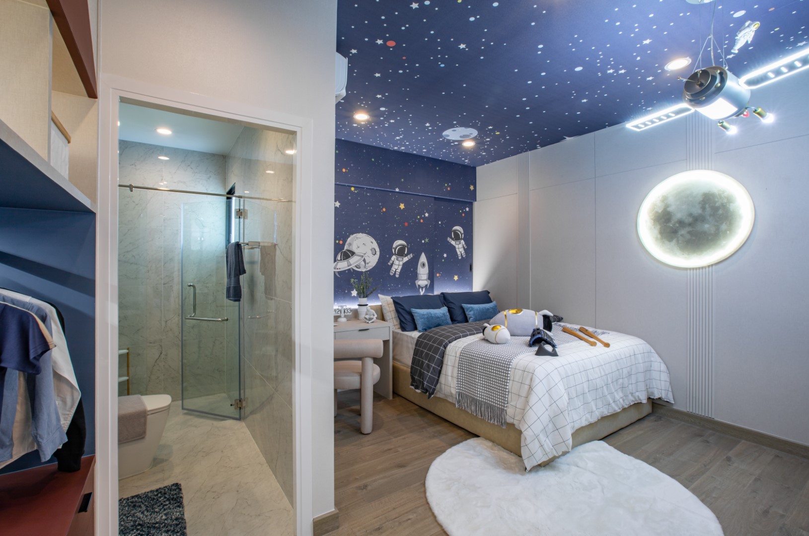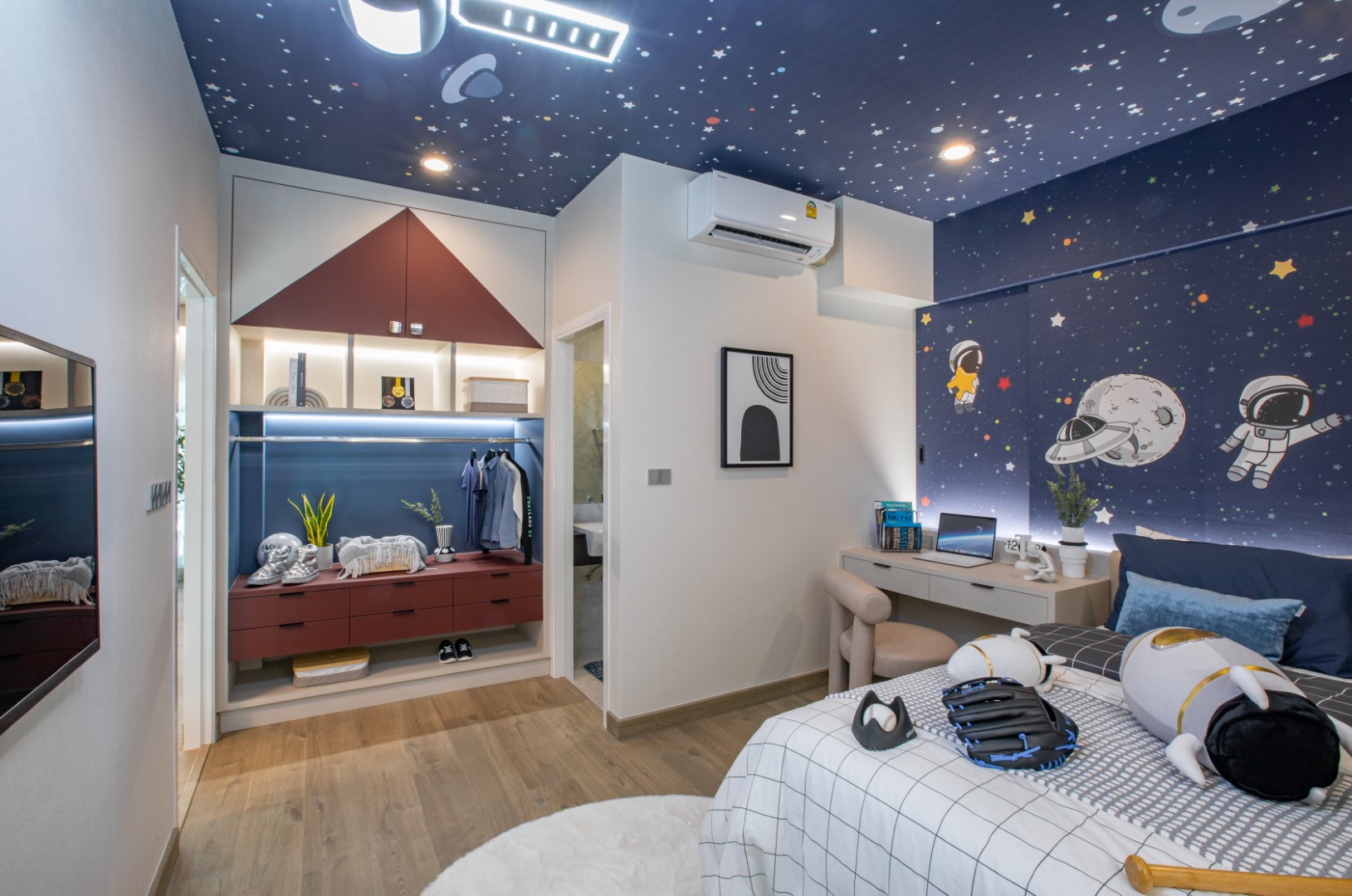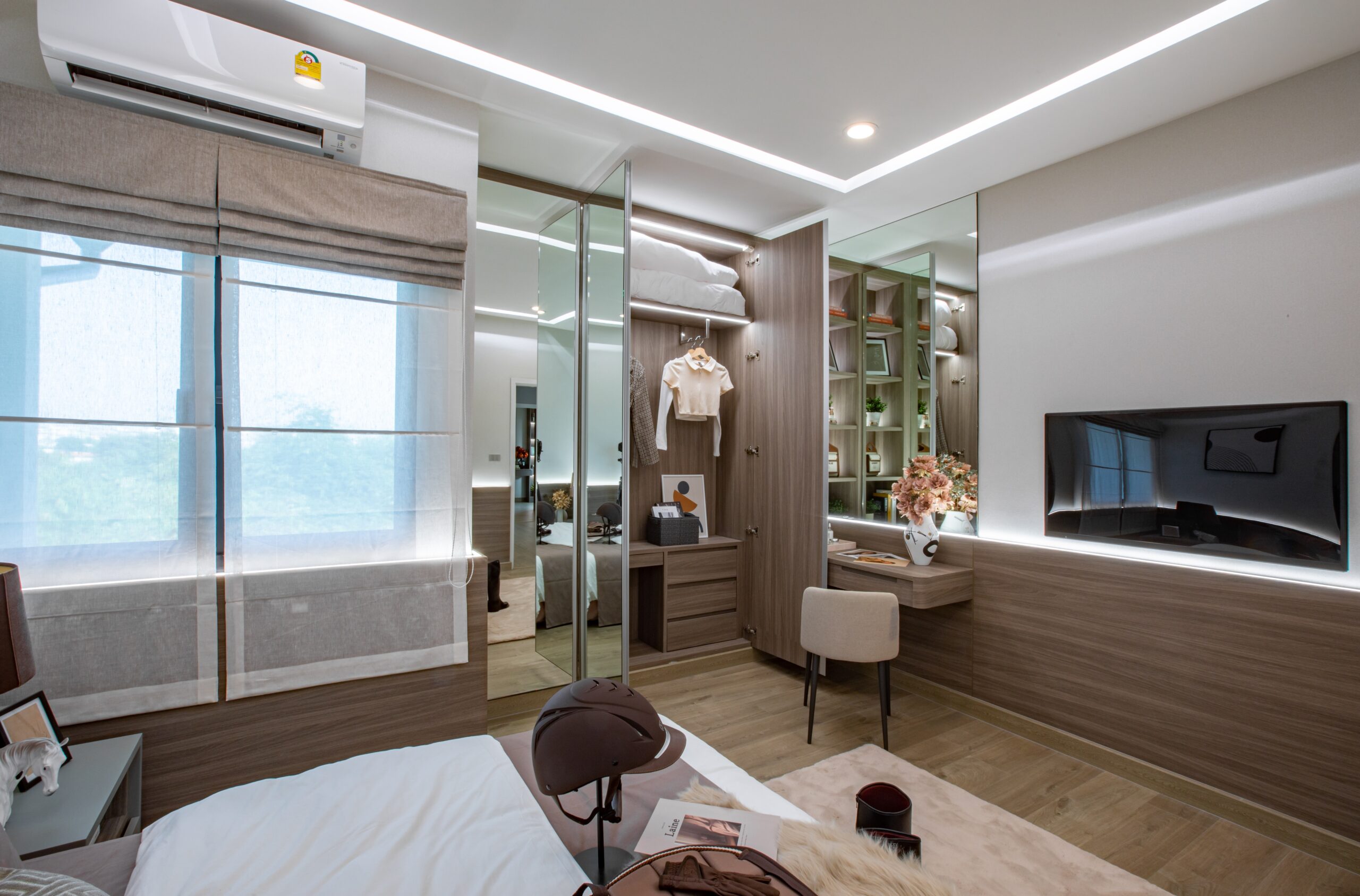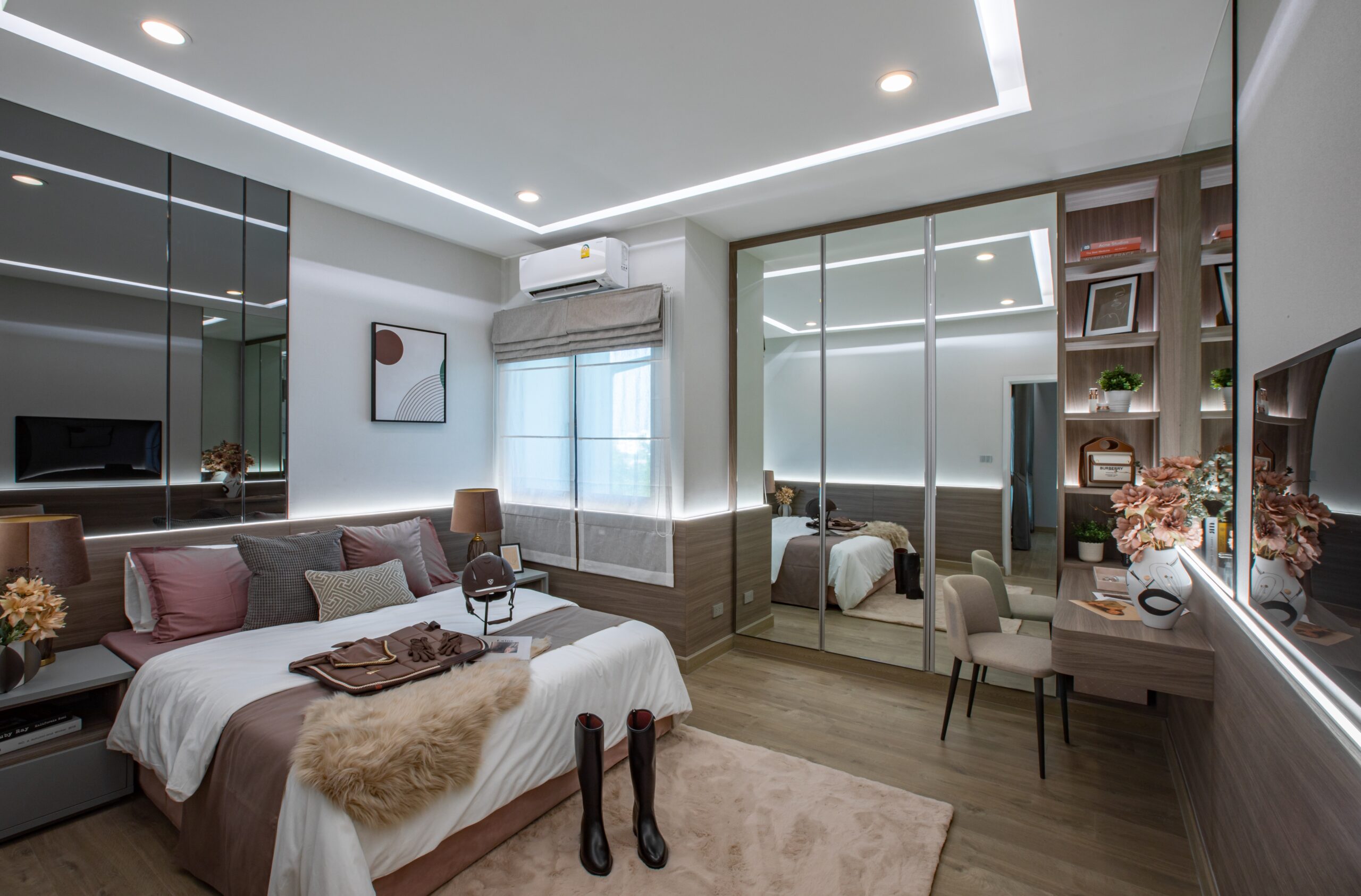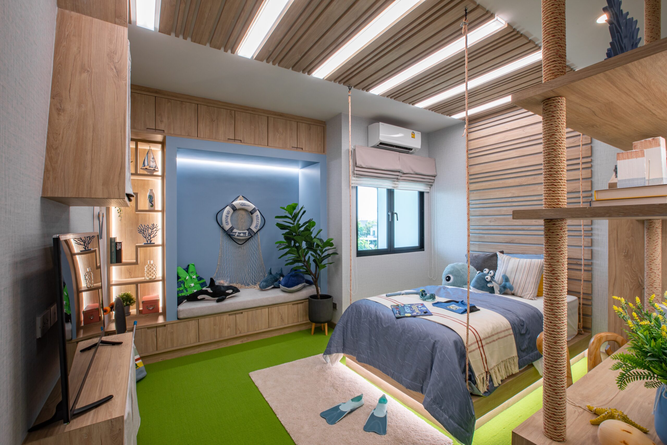 บ้านเดี่ยว 2 ชั้นพื้นที่ใช้สอย : 174 ตร.ม.4 ห้องนอน, 3 ห้องน้ำ, 2 ที่จอดรถ, 1 ห้องรับแขก, 1 ห้องอาหาร และ 1 ห้องครัว มาต่อที่ Bedroom 2 กันค่ะ ภายในห้องได้พื้นที่วางเตียงขนาด 3.5-5 ฟุตค่ะ ได้บานหน้าต่างรับแสง 2 บาน มีพื้นที่เหลือเพียงพอสำหรับวางตู้เสื้อผ้า, โต๊ะเครื่