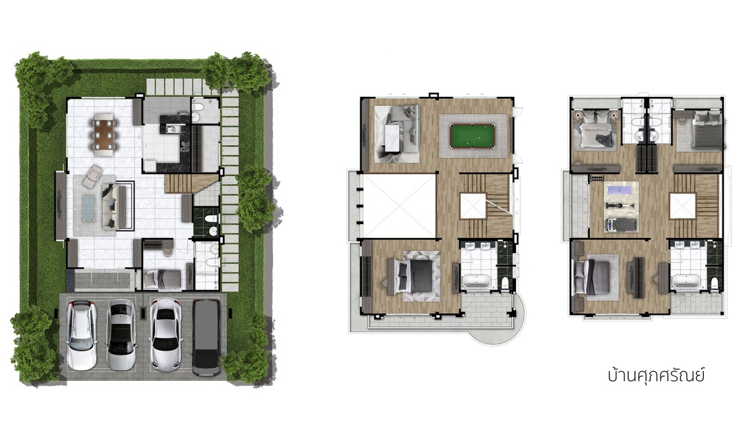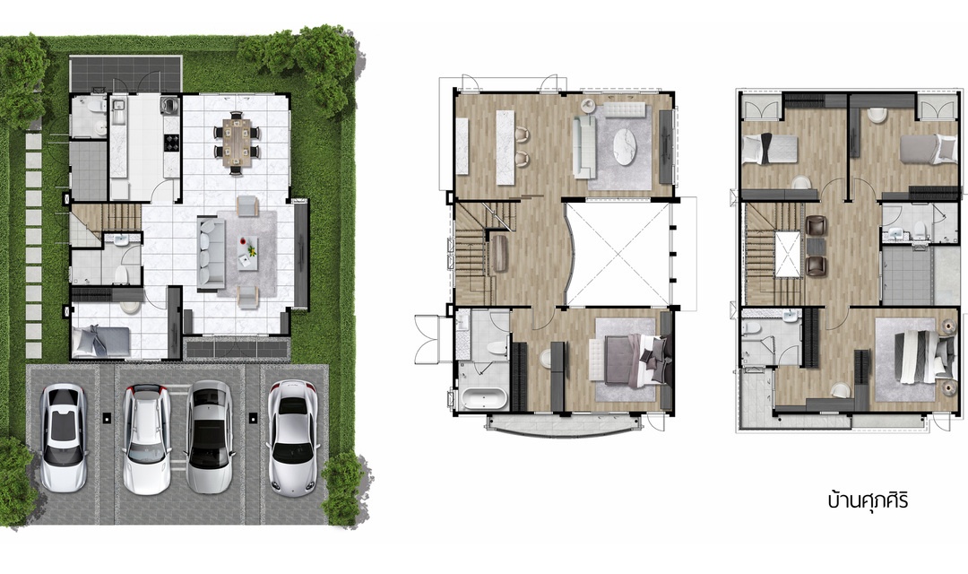แบบบ้าน : SUPASARAN พื้นที่ใช้สอยเริ่ม 380 ตร.ม. 5 ห้องนอน 7 ห้องน้ำ 1 ห้องพักผ่อน พร้อมที่จอดรถ 4 คัน รองรับครอบครัวใหญ่