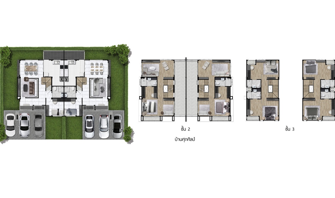 แบบบ้าน : SUPASILP บ้านแฝด 3 ชั้น พื้นที่ใช้สอย 243 ตร.ม. 4 ห้องนอน 4 ห้องน้ำ 1ห้องพักผ่อน และที่จอดรถ 2 +1คัน