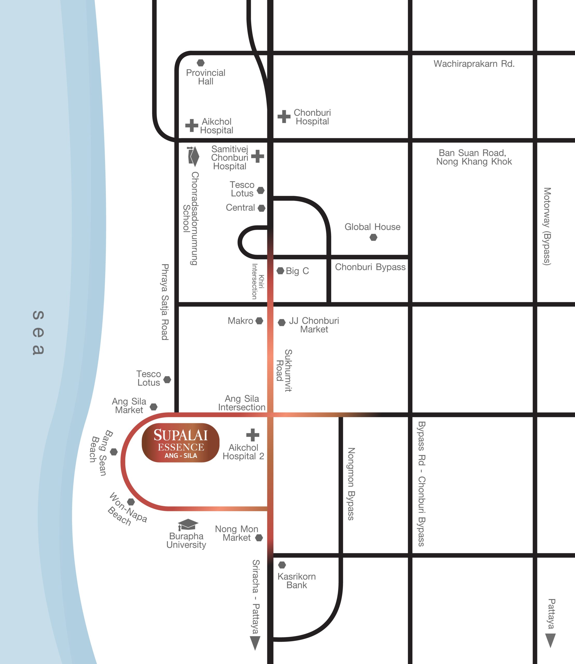จุดเด่น ทำเลใจกลางเมืองชลบุรี โครงการติดถนนอ่างศิลา ใกล้ถนนสุขุวิทเพียง 2 กม.เชื่อมต่อทุกๆการเดินทาง ใช้ชีวิตอย่างเหนือระดับ