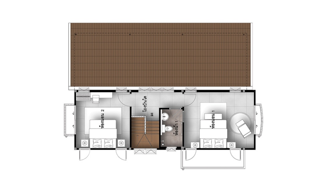 ตัวห้องน้ำชั้นล่างทางเข้าจะอยู่ติดกับบันได ใช้พื้นที่ด้านใต้ของบันไดนั่นเองค่ะ ภายในได้อ่างล้างหน้าพร้อม Low Wall และบานกระจกค่ะ ติดกันจะเป็นโถสุขภัณฑ