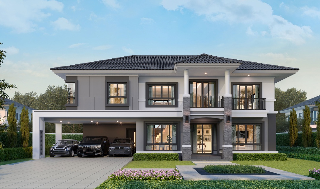 บ้านเดี่ยว 2 ชั้น พื้นที่ใช้สอย 330 ตร.ม. 4 ห้องนอน 6 ห้องน้ำ 3 ที่จอดรถ