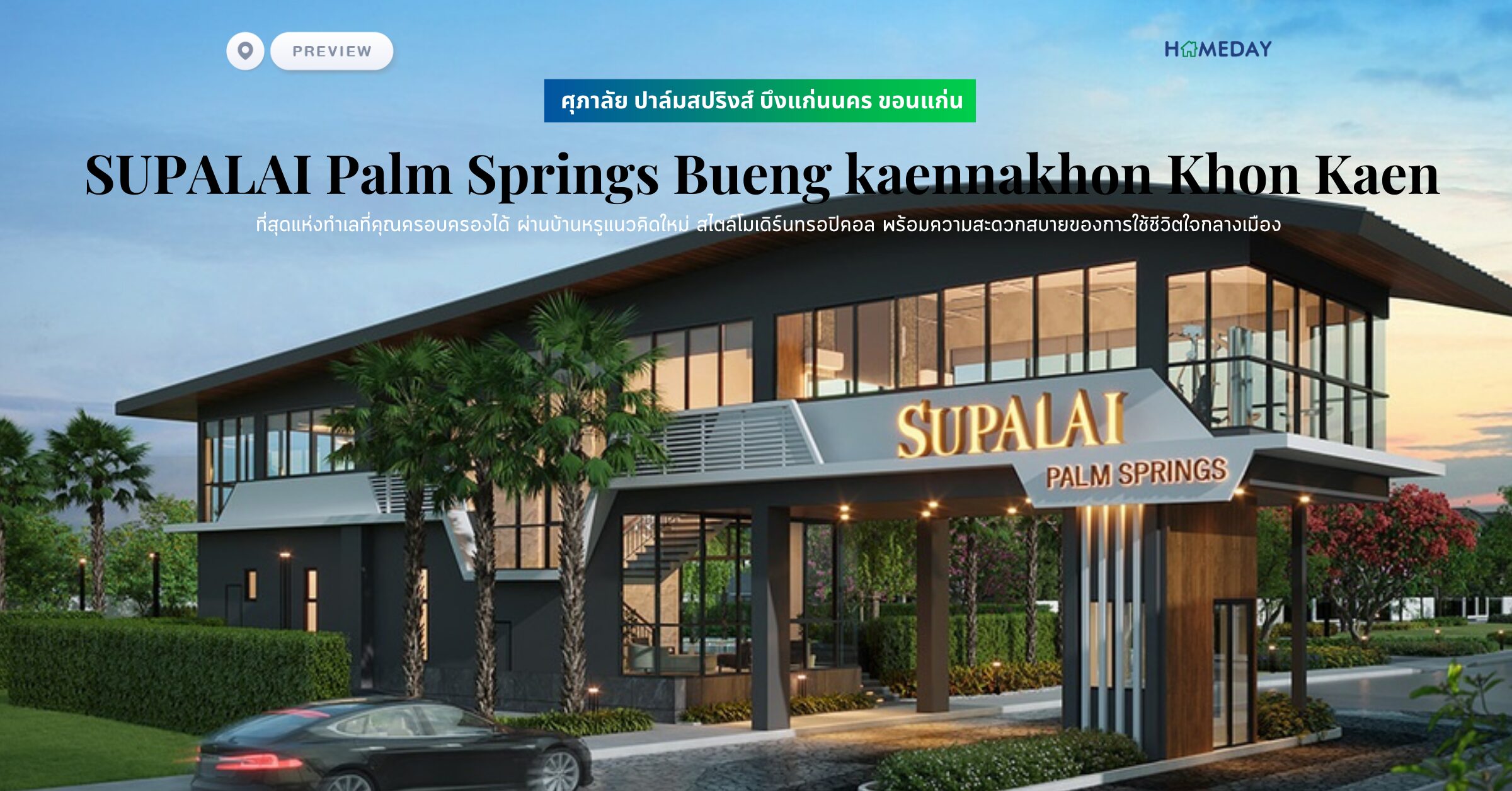"โครงการ ศุภาลัย ปาล์มสปริงส์ บึงแก่นนคร ขอนแก่น (SUPALAI Palm Springs Bueng kaennakhon Khon Kaen) ความสมบูรณ์แบบของชีวิต ที่สุดแห่งทำเลที่คุณครอบครองได้ ศุภาลัย ปาล์มสปริงส์ บึงแก่นนคร สะท้อนการใช้ชีวิตที่สมบูรณ์และสง่างาม ผ่านบ้านหรูแนวคิดใหม่ สไตล์โมเดิร์นทรอปิคอล บนทำเลที่ดีที่สุด ริมบึงแก่นนคร ผ่อนคลาย รายล้อมด้วยธรรมชาติ พร้อมความสะดวกสบายของการใช้ชีวิตใจกลางเมือง"