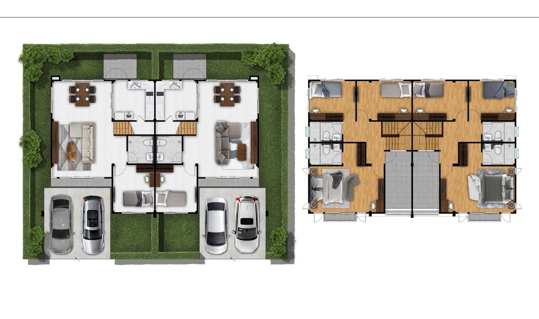 บ้านรุ่นใหม่ 2 ชั้น พื้นที่ใช้สอย 126 ตร.ม. ขนาด 3 ห้องนอน 3 ห้องน้ำ พร้อมที่จอดรถ 2 คัน