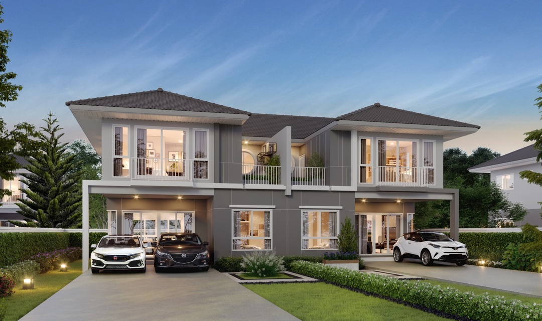 บ้านรุ่นใหม่ 2 ชั้น พื้นที่ใช้สอย 176 ตร.ม. 4 ห้องนอน 3 ห้องน้ำ 1 Sky Terrace ที่จอดรถ 2 คัน