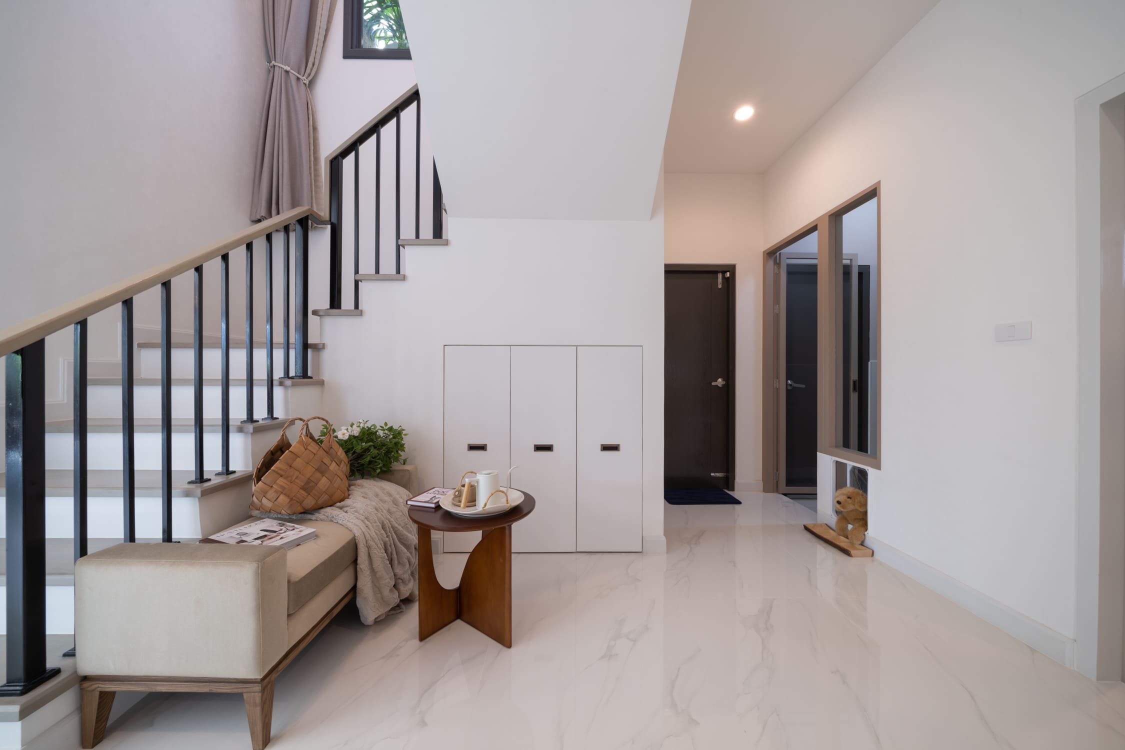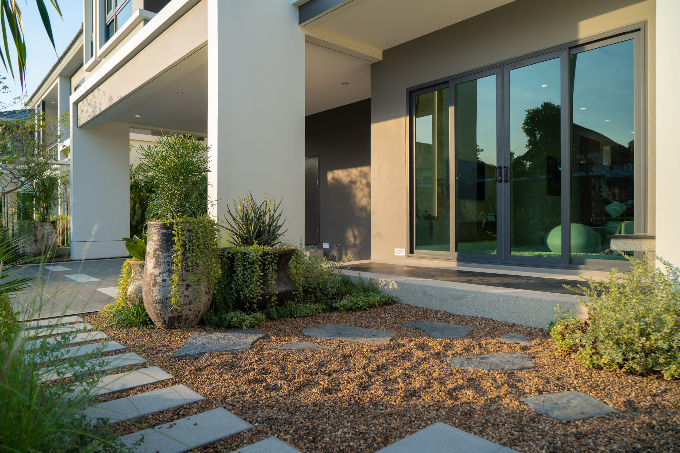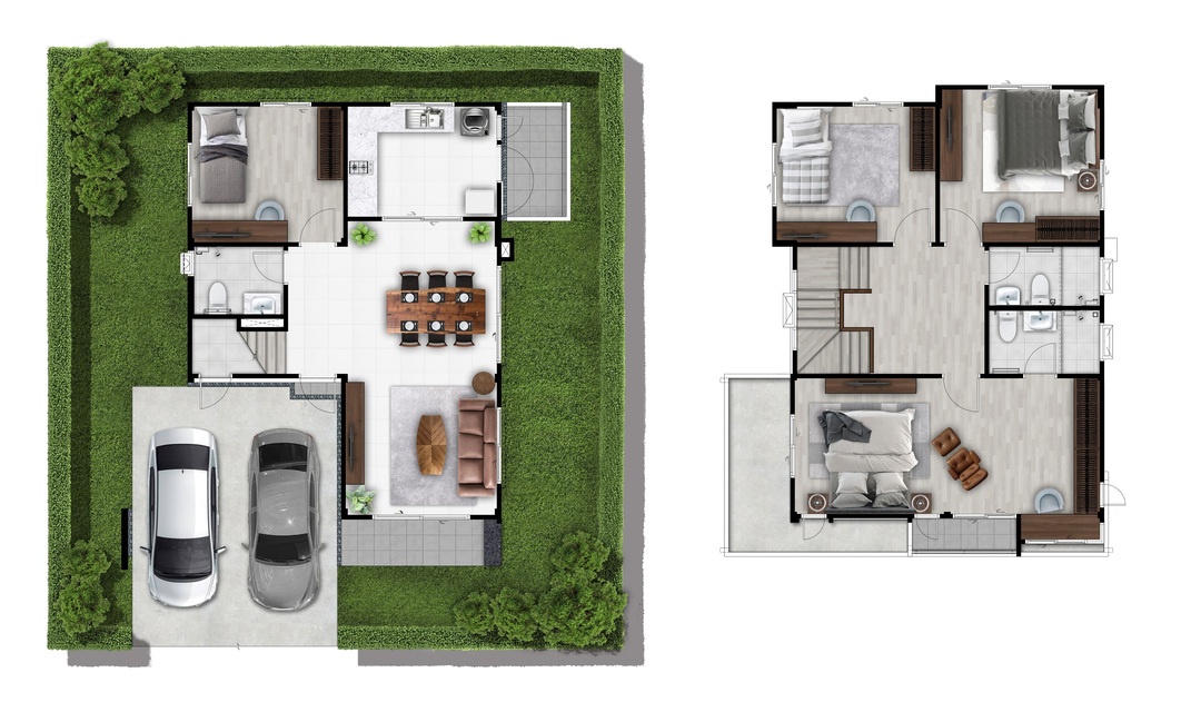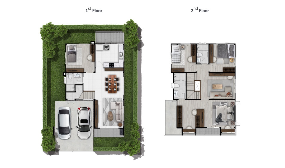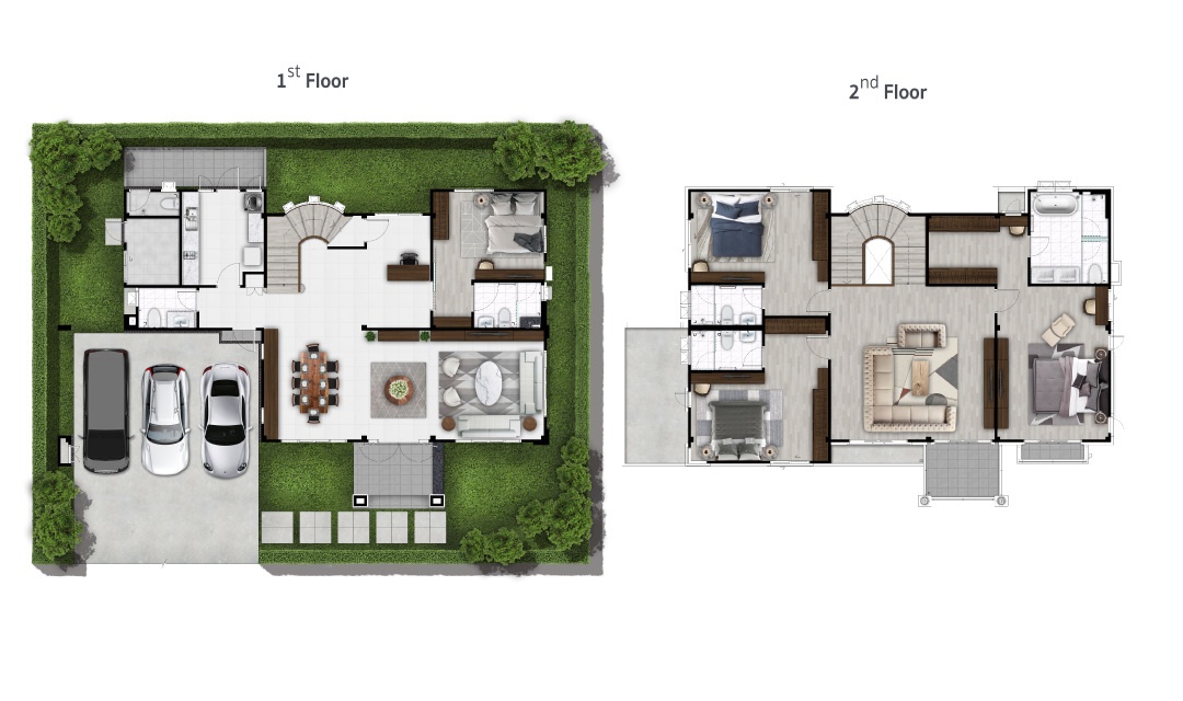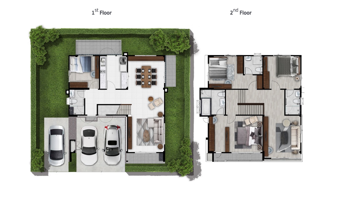 บ้านที่เราพามาชมกันวันนี้ เป็นแบบบ้านเดี่ยวของทางโครงการค่ะ ด้านหน้าบ้านได้พื้นที่จอดรถ 2 คัน ติดกับลานจอดรถจะมีห้องเก็บของพร้อมทางเข้ารองอยู่ค่ะ สะดว