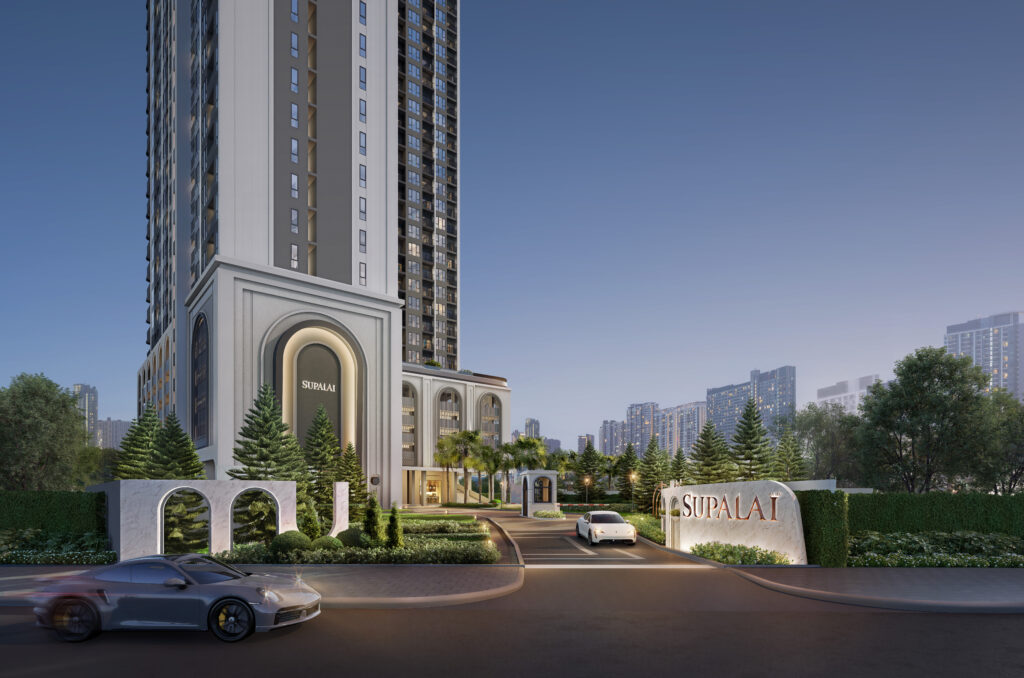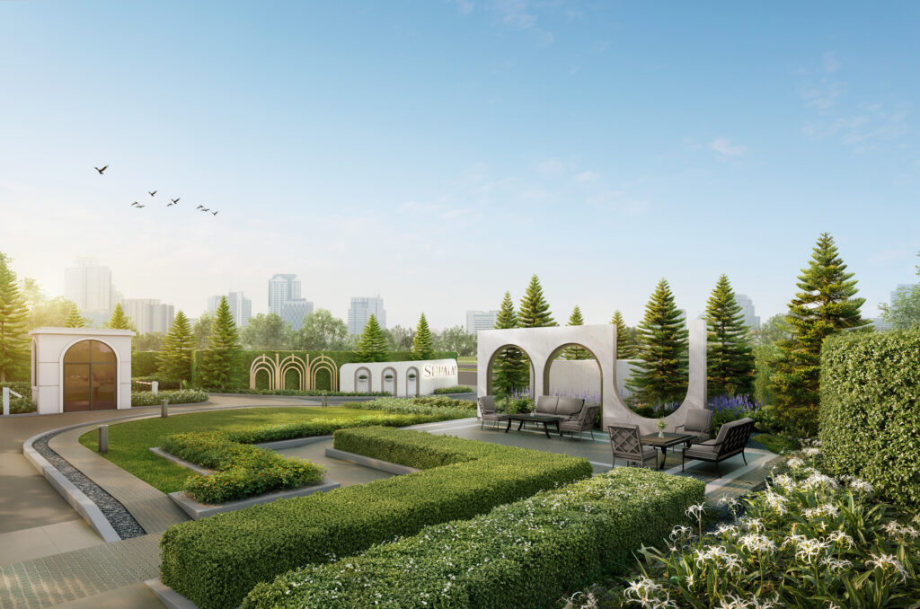 • Main Entranceได้รับการออกแบบอย่างเพื่อสร้างความประทับใจแรกแก่ผู้อยู่อาศัยและผู้มาเยือน ด้วยสวนต้อนรับในรูปแบบ Parterre Garden ซึ่งเป็นสวนประดับสไตล์คลาสสิกที่เน้นความสมมาตรและความสมดุลในองค์ประกอบสร้างภาพลักษณ์ที่หรูหราและเป็นระเบียบเรียบร้อย ลวดลายของสวนมีการเชื่อมโยงอย่างกลมกลืนกับลายพื้นทางเดินและลานหน้าทางเข้า ช่วยเน้นแกนหลักของพื้นที่และเสริมให้บรรยากาศโดยรวมดูโอ่อ่า กว้างขวาง และสง่างาม เสมือนเป็นโถงต้อนรับกลางแจ้งที่เชิญชวนให้ก้าวเข้าสู่โครงการ ภายในโครงการมีมุมนั่งพักผ่อนที่สามารถเชื่อมต่อสู่ล็อบบี้ได้อย่างสะดวกสบาย และมีสนามเด็กเล่นที่ออกแบบให้ปลอดภัยและกลมกลืนกับบรรยากาศโดยรอบ