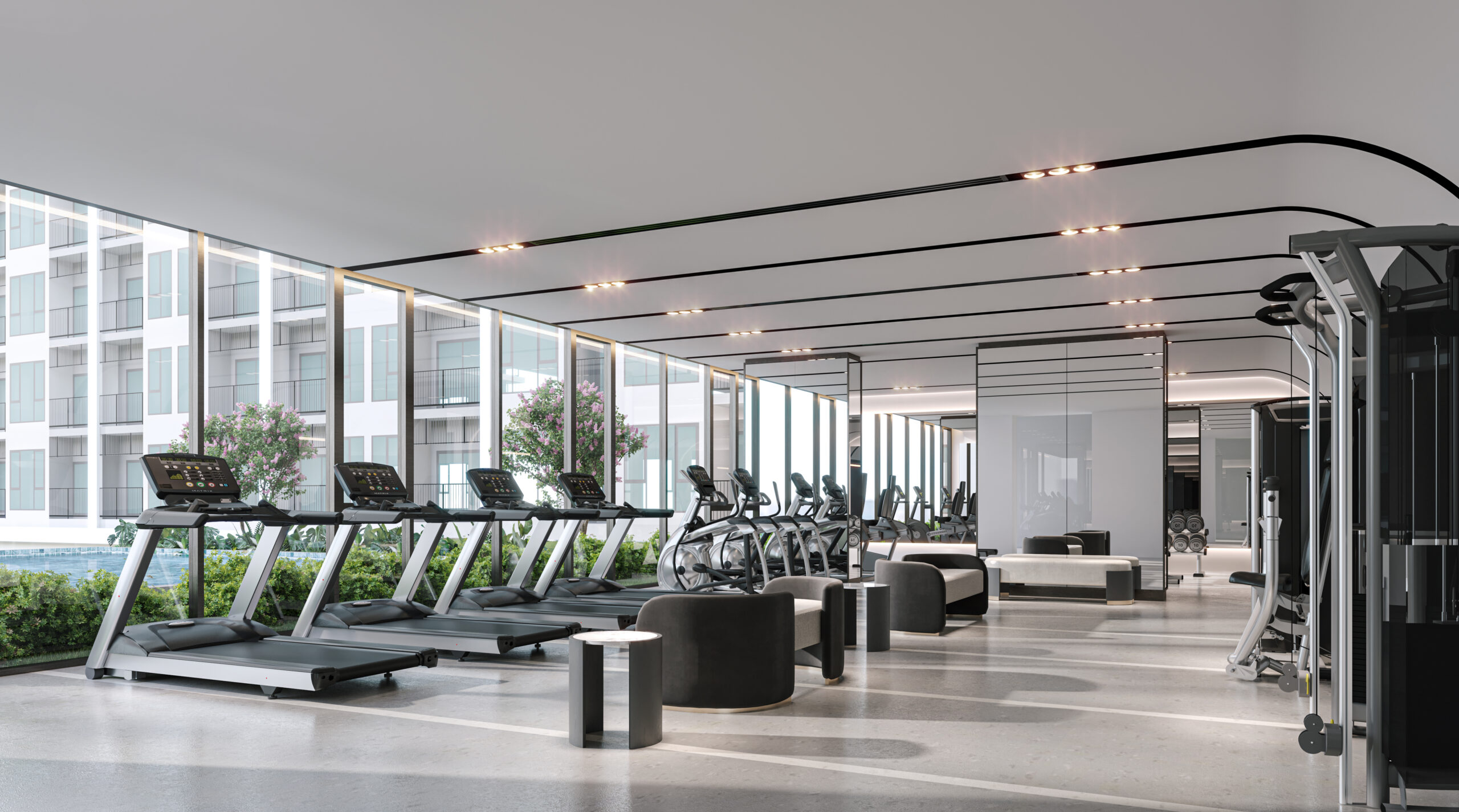 • Fitness การออกแบบฟิ ตเนสที่ค านึงถึงการจัดสรรพื้นที่ การเลือกใช้วัสดุที่เหมาะสมและการจัดวางอุปกรณ์ให้สะดวกต่อการใช้งาน โดยความต่อเนื่องของพื้นที่สามารถมองเห็นวิวของสระว่ายน ้า