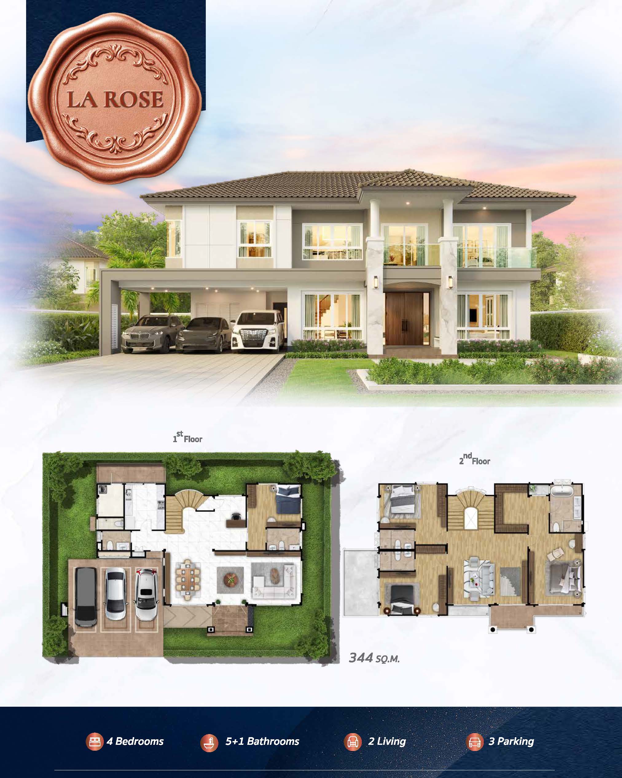 LA ROSE พื้นที่ใช้สอย 344 ตร.ม. ฟังก์ชัน 4 ห้องนอน, 6 ห้องน้ำ, 3 ที่จอดรถ