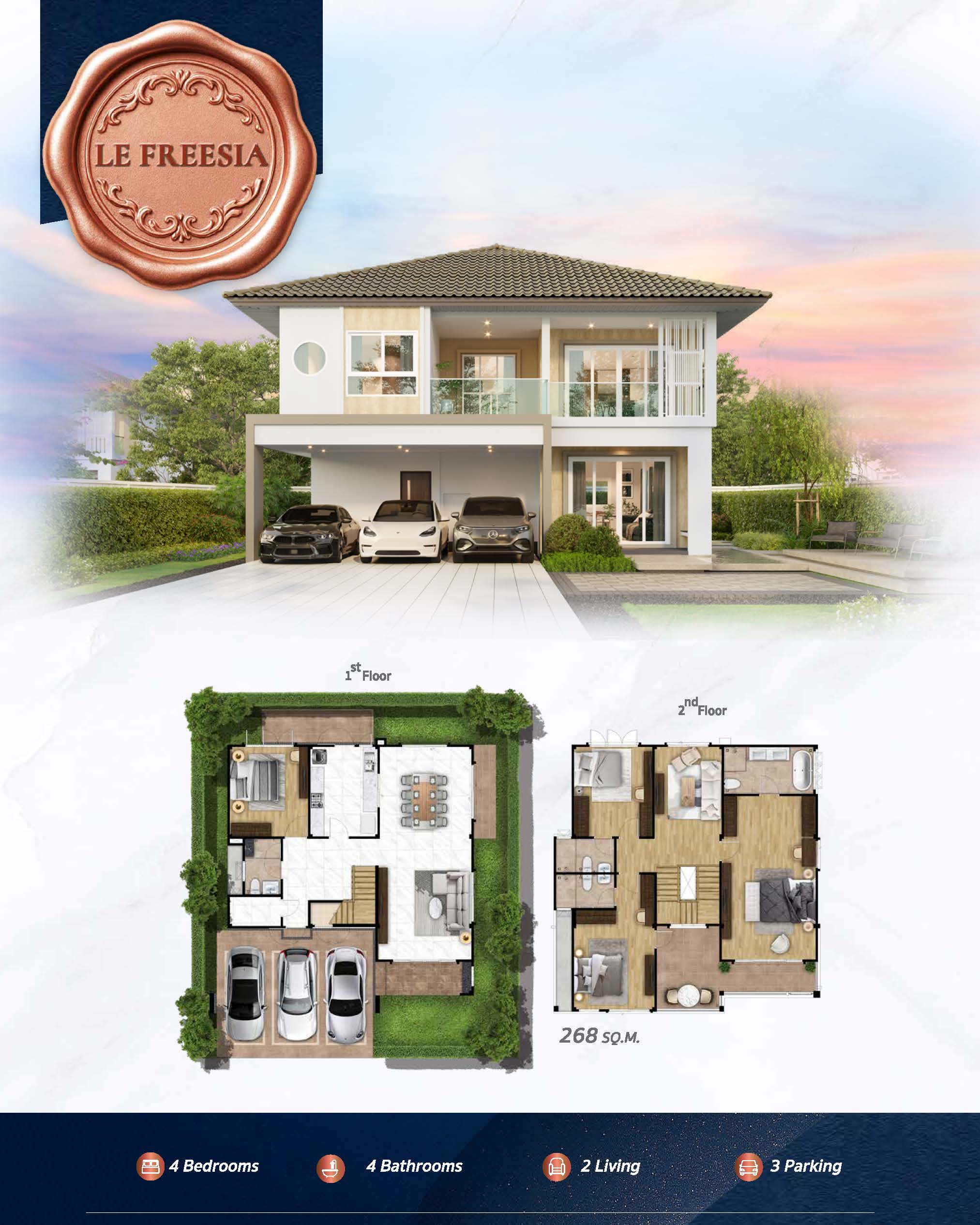 LE FREESIA พื้นที่ใช้สอย 268 ตร.ม. ฟังก์ชัน 4 ห้องนอน, 4 ห้องน้ำ, 3 ที่จอดรถ