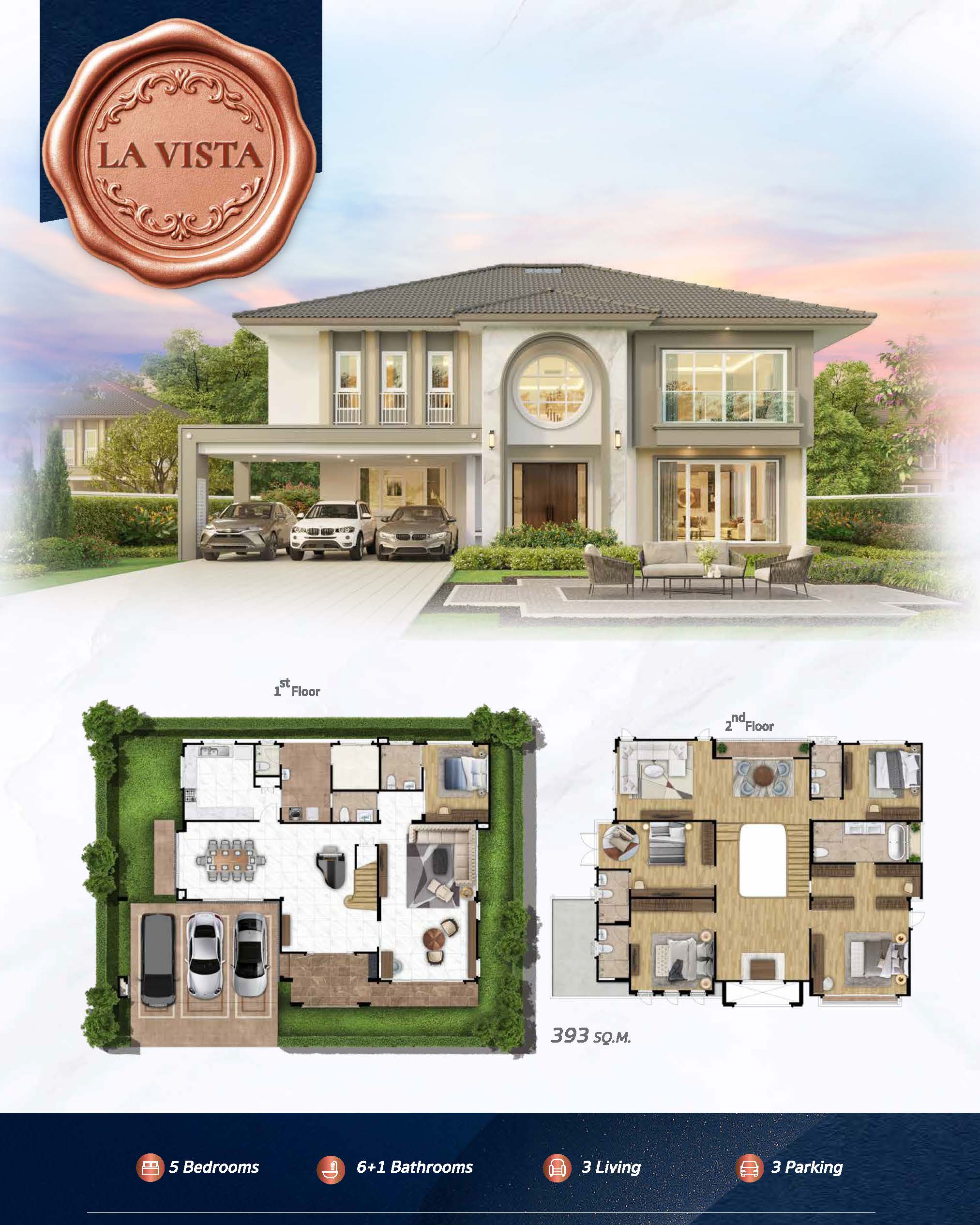 LA VISTA พื้นที่ใช้สอย 393 ตร.ม. ฟังก์ชัน 5 ห้องนอน, 7 ห้องน้ำ, 3 ที่จอดรถ