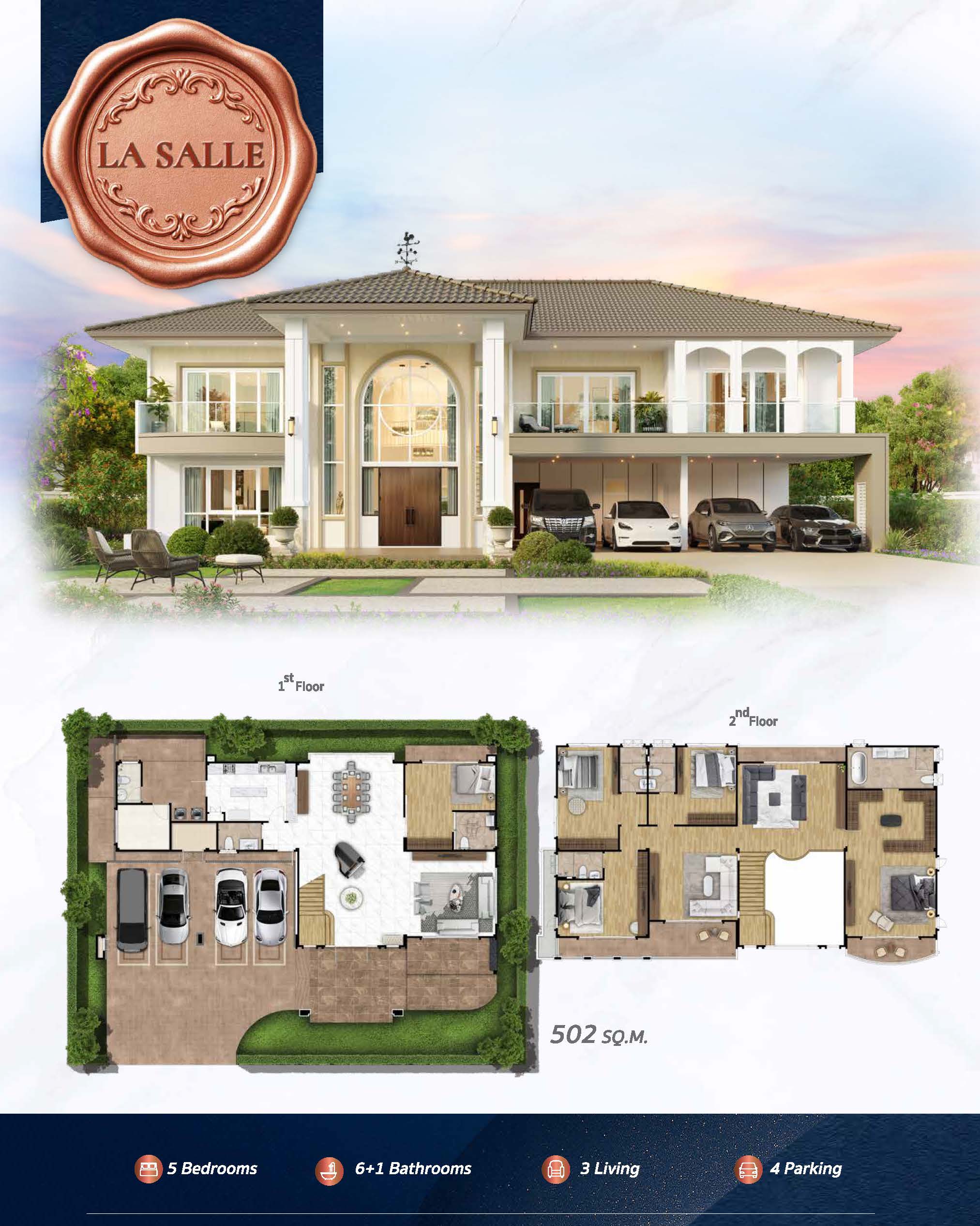 LA SALLE พื้นที่ใช้สอย 502 ตร.ม. ฟังก์ชัน 5 ห้องนอน, 7 ห้องน้ำ, 4 ที่จอดรถ