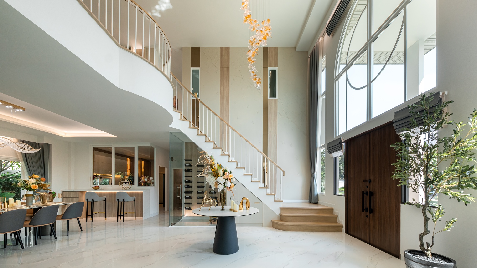"A Touch of Romance in Luxury Design" สะท้อนความโรแมนติก... ผ่านงานดีไซน์ที่เกิดจากความรู้สึก "Endless Elegance" ความสง่างามไร้ที่สิ้นสุด สะท้อนความหรูหราที่เหนือกาลเวลา ผ่านประกายสีทอง และเส้นโค้งที่สมบูรณ์แบบ ครบครันด้วยฟังก์ชันการใช้งานและสระว่ายน้ำสุดหรูดีไซน์ใหม่อย่างลงตัว