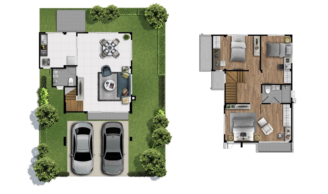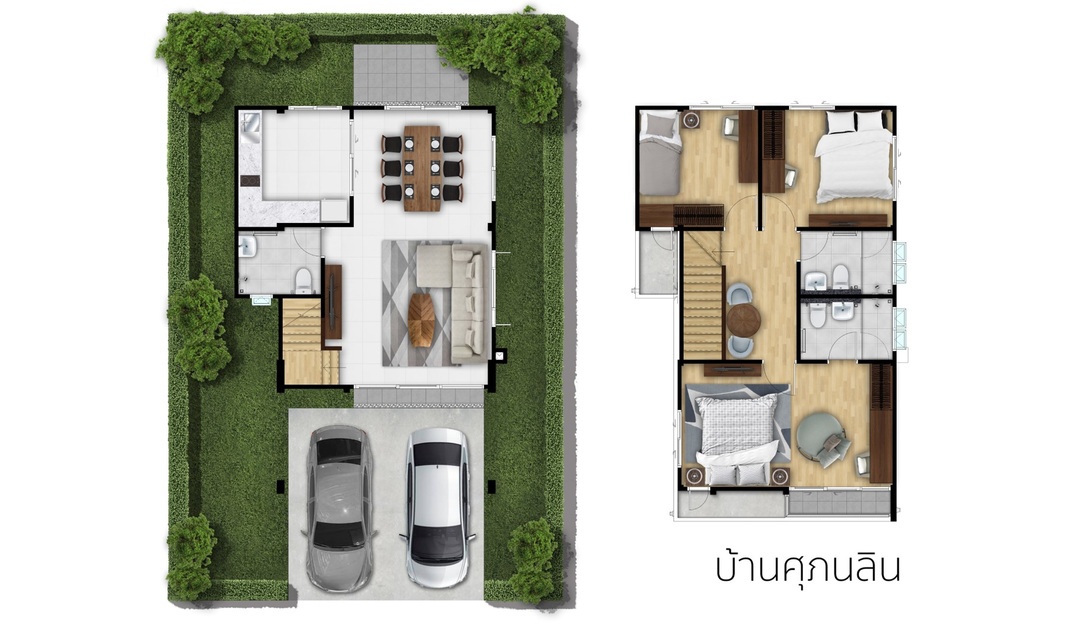 บ้านแฝดฟังก์ชันบ้านเดี่ยว สำหรับครอบครัวคนรุ่นใหม่ สามารถจอดรถได้ 2 คัน ห้องนอนใหญ่ (Master Bedroom) ออกแบบให้มีขนาดใหญ่เพื่อใช้พักผ่อนและทำกิจกรรมต่างๆได้อย่างสบาย