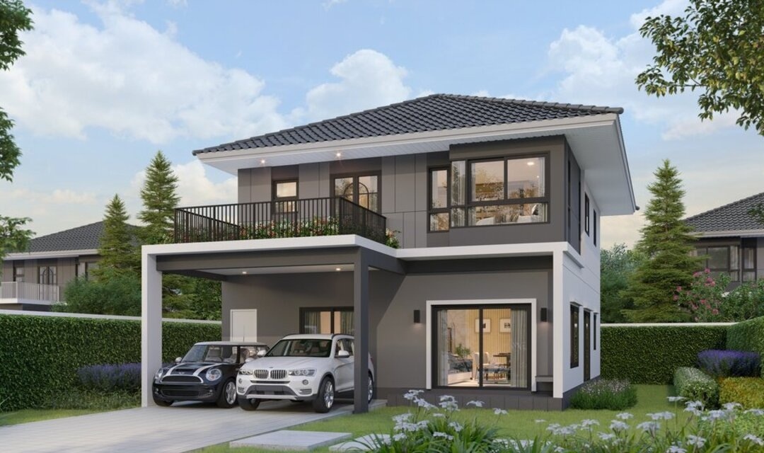 แบบบ้าน : ศุภิสรา บ้านเดี่ยว 2 ชั้น พื้นที่ใช้สอย 254 ตร.ม. 5 ห้องนอน 4 ห้องน้ำ ที่จอดรถ 2 คัน พร้อมระเบียงขนาดใหญ่