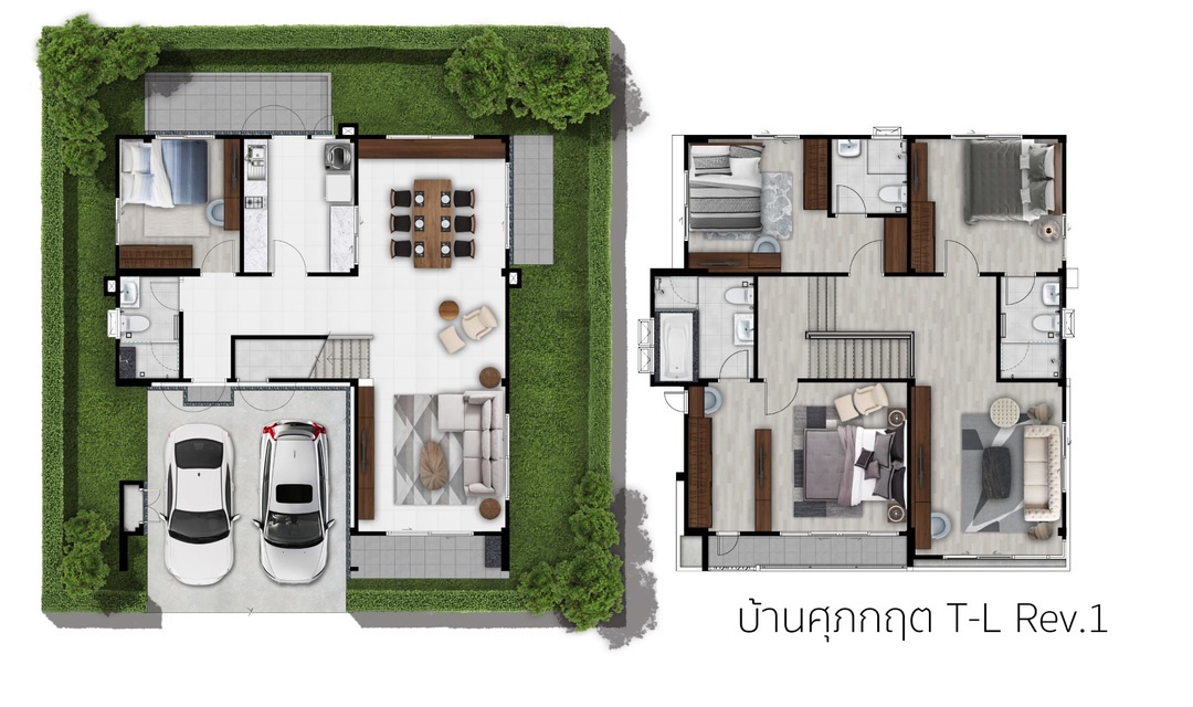 แบบบ้าน : ศุภฤทัย พื้นที่ใช้สอยเริ่ม 208 ตร.ม. ขนาด 4 ห้องนอน 3 ห้องน้ำ พร้อมที่จอดรถ 2 คัน