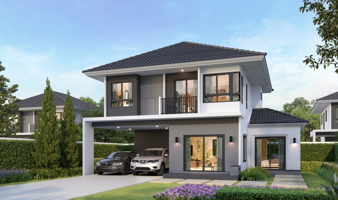 แบบบ้าน : ศุภฤทธิ์ บ้านเดี่ยว 2 ชั้น พื้นที่ใช้สอย 178 ตร.ม. 4 ห้องนอน 3 ห้องน้ำ ที่จอดรถ 2 คัน