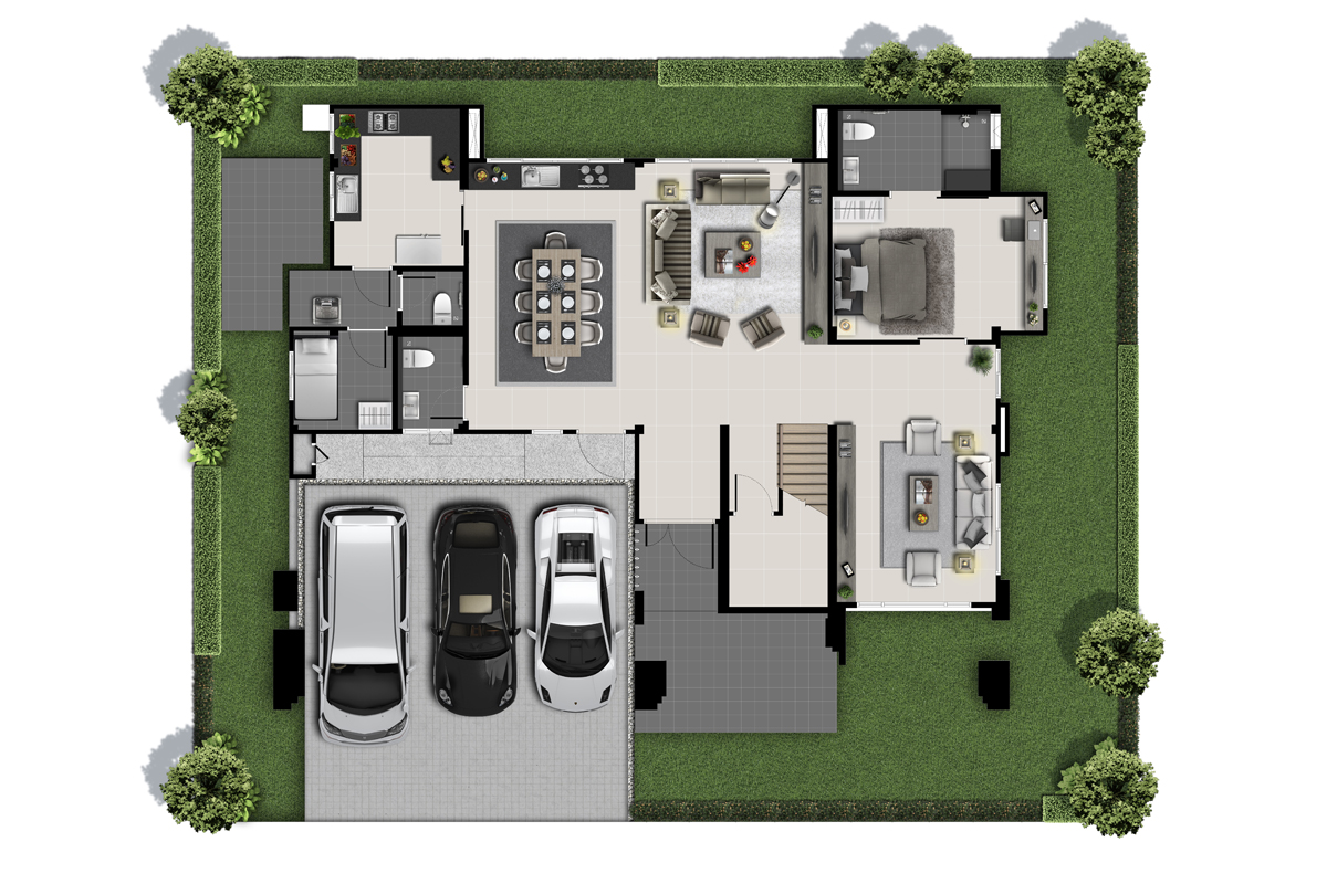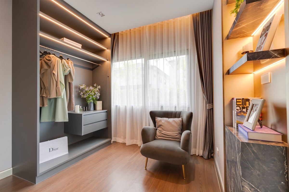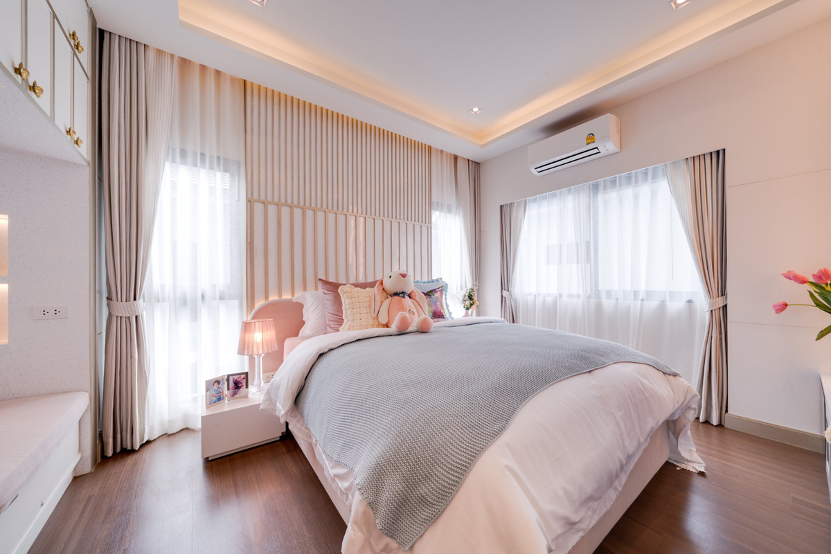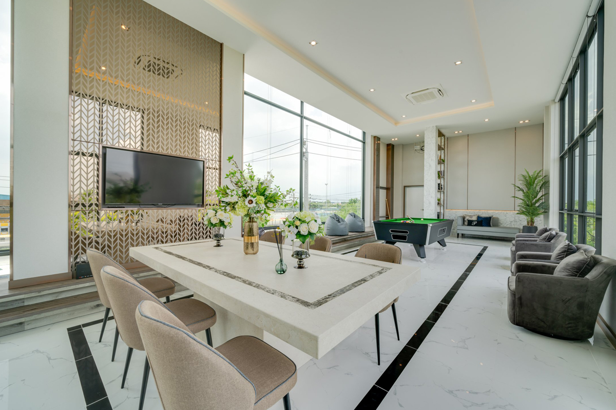 พื้นที่ใช้สอย 275 ตารางเมตร 4 ห้องนอน 5 ห้องน้ำ 1 ห้องรับแขก (Double Volume) 2 ห้องนั่งเล่น 1 ห้องรับประทานอาหาร 1 ห้องครัว 1 ห้องเก็บของ 1 ห้องนั่งเล่น+ห้องน้ำ ที่จอดรถ 3 คัน (ในร่ม)