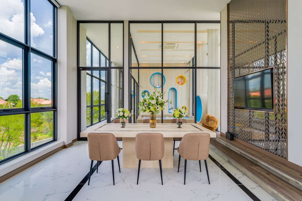 พื้นที่ใช้สอย 380 ตารางเมตร 5 ห้องนอน 6 ห้องน้ำ 1 ห้องรับแขก (Double Volume) 2 ห้องนั่งเล่น 1 ห้องรับประทานอาหาร 1 ห้องครัว 1 ห้องเก็บของ 1 ห้องนั่งเล่น+ห้องน้ำ 1 ห้องซักรีด ที่จอดรถ 3 คัน (ในร่ม)