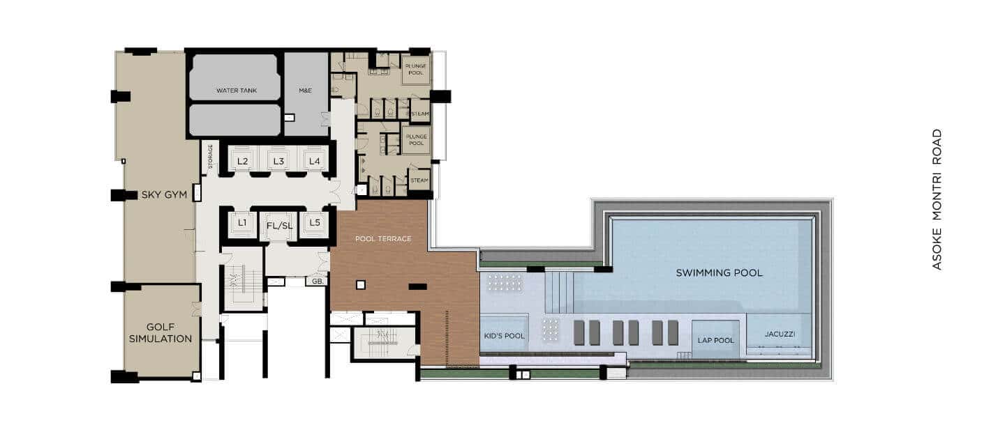 สระว่ายน้ำในมุมกว้าง พร้อมสระเด็ก สระว่ายน้ำออกกำลังกาย และสระสปาแช่ตัวจากุซซี่