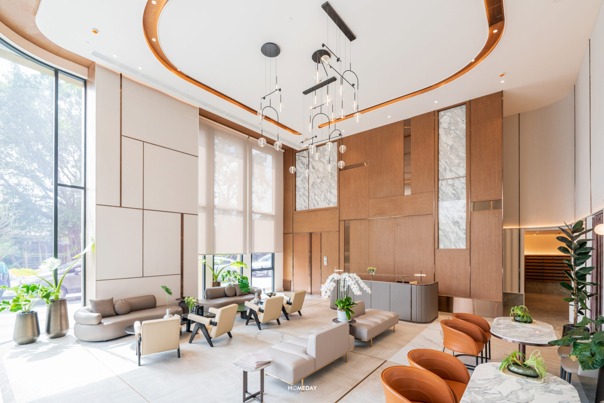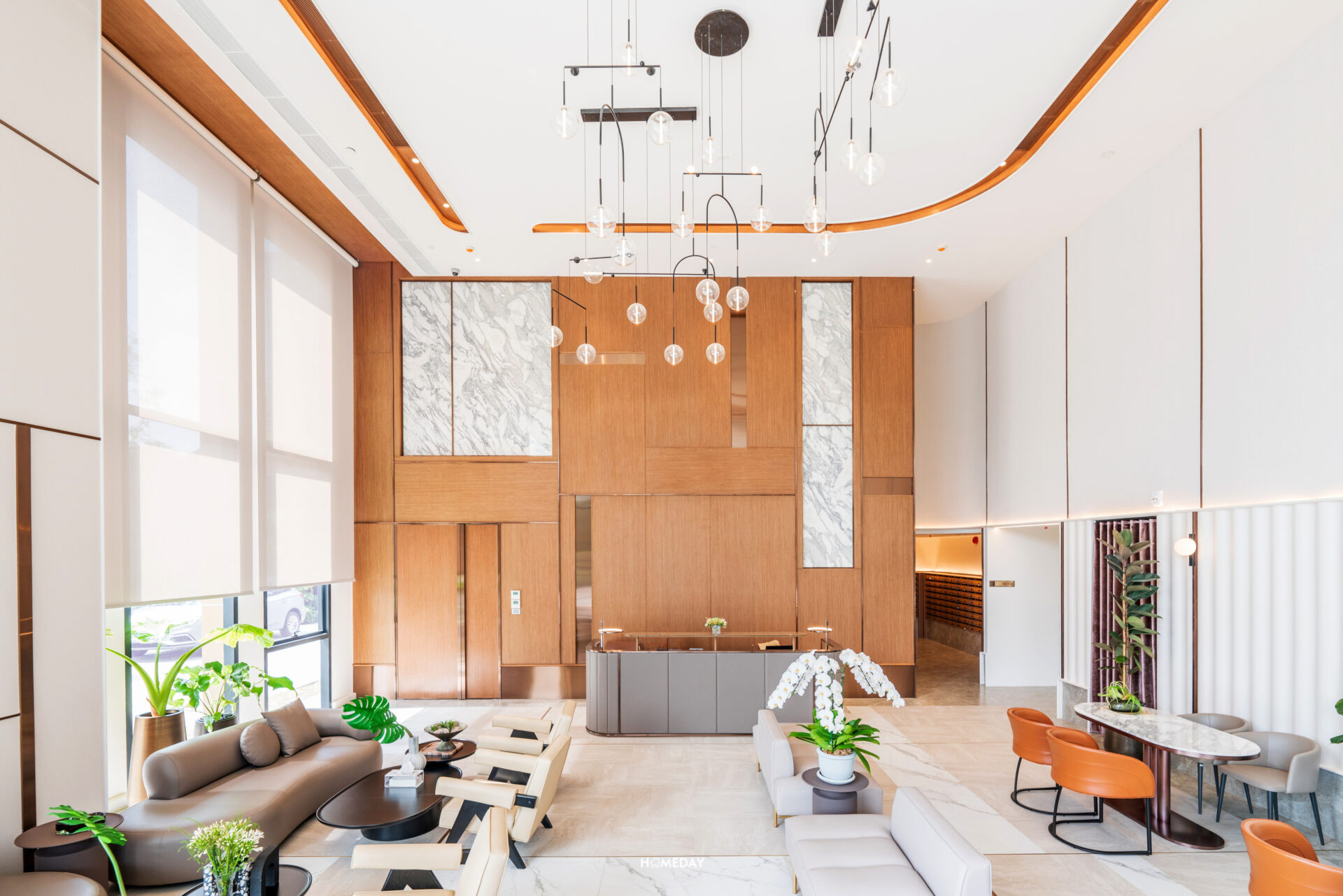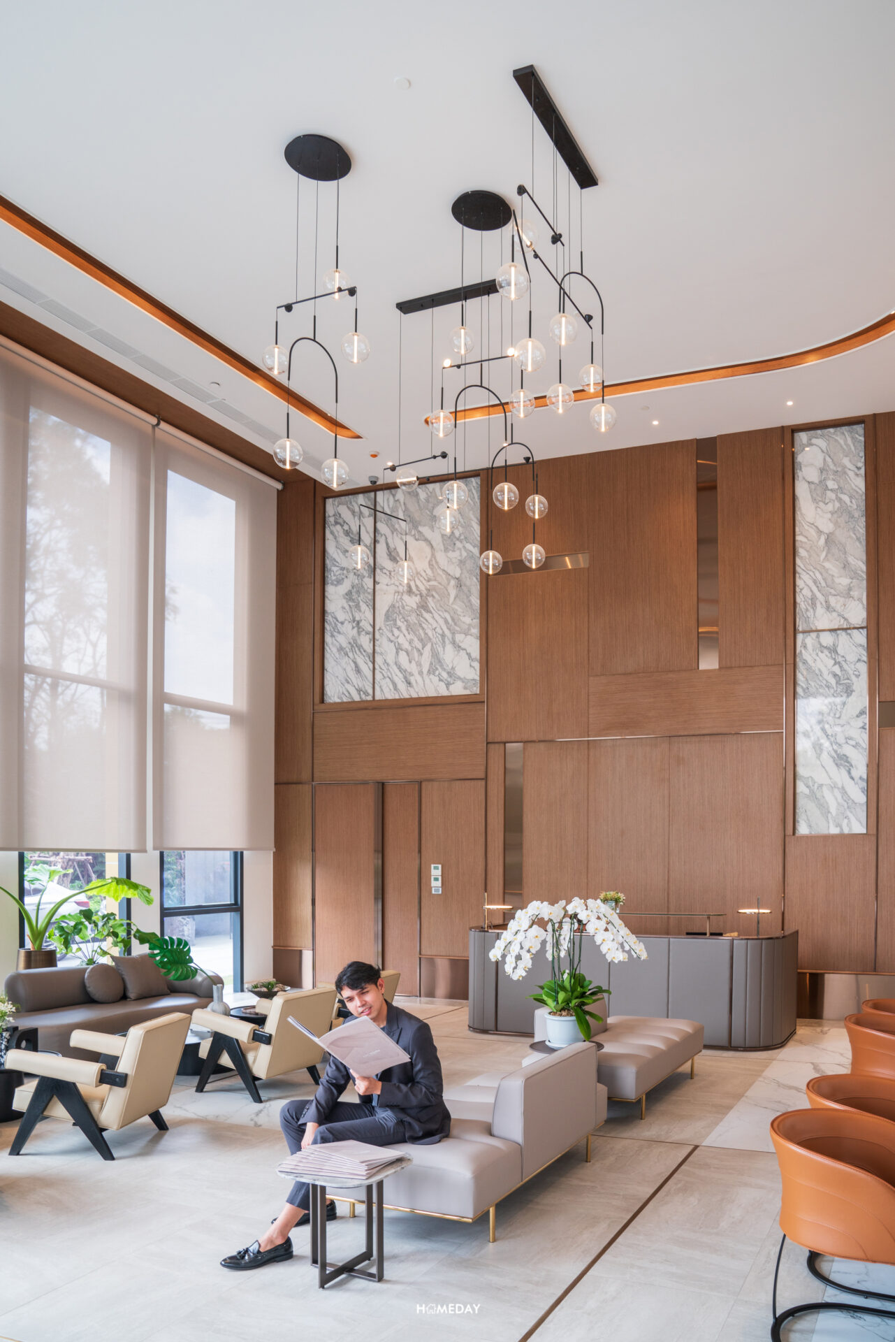 THE LOUNGE ล็อบบี้ที่หรูหรากว้างขวาง โอ่อ่ามีระดับ พร้อมต้อนรับทุกท่านอย่างอบอุ่น และด้วยกระจกบานสูงที่ เปิดรับธรรมชาติจากแสงและสีเขียวของต้นไม้ ช่วยดึงให้เราใกล้ชิดกับธรรมชาติอย่างแท้จริง โดย ฝีมือการออกแบบของ Chemistri Interior Studio มืออาชีพด้านการตกแต่งภายในที่ร่วมงานกับ ชาญอิสสระมาอย่างยาวนาน ซึ่งพิถีพิถันในการคัดเลือกวัสดุรรมชาติที่ให้รายละเอียดของความ เป็นเทมัลลิค สัมผัสได้ถึงการต้อนรับที่อบอุ่นและสง่างาม