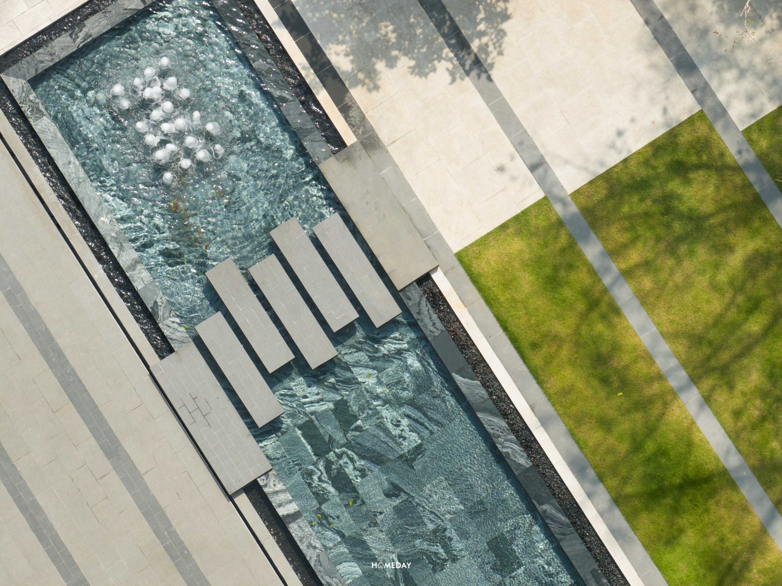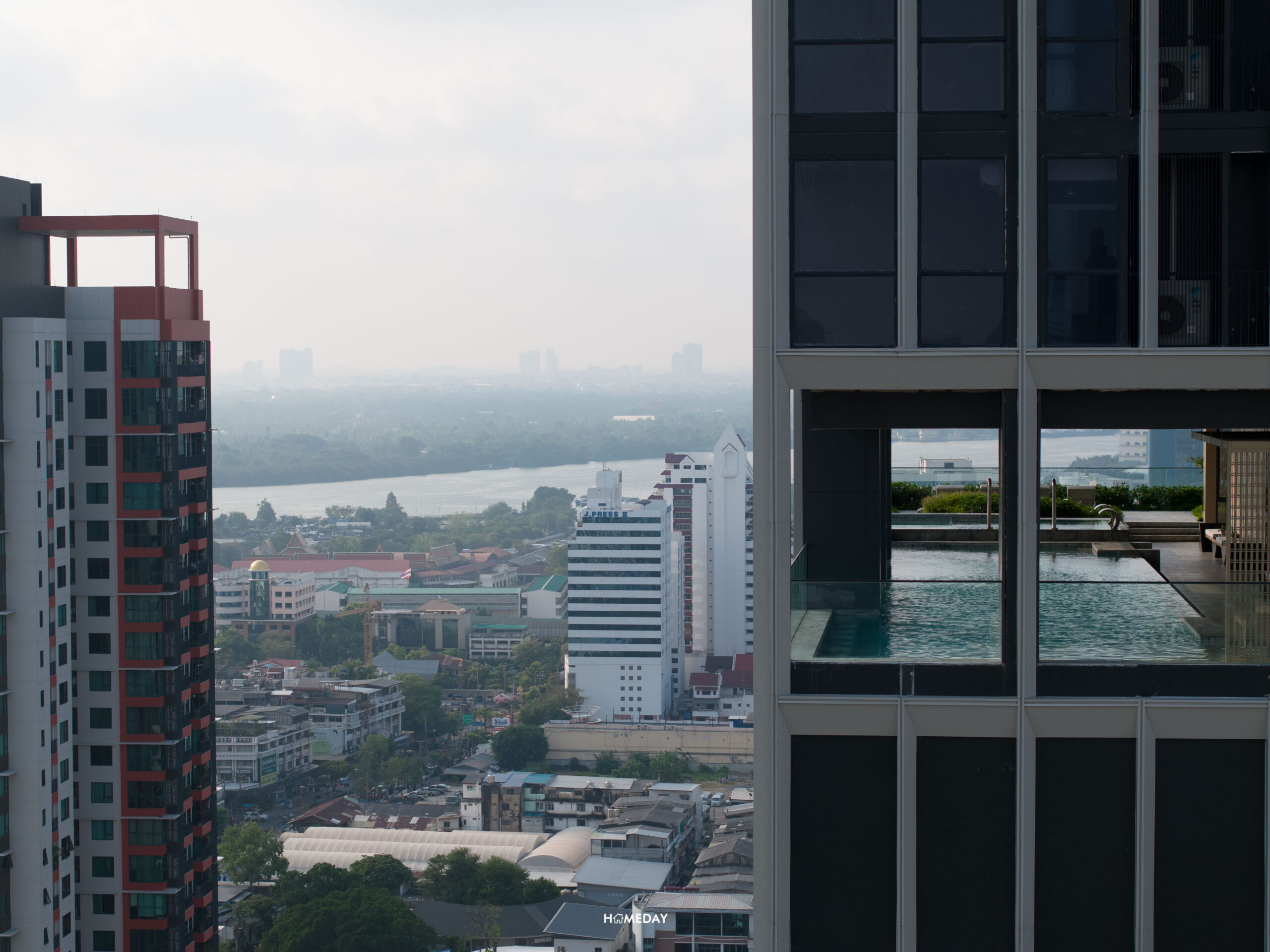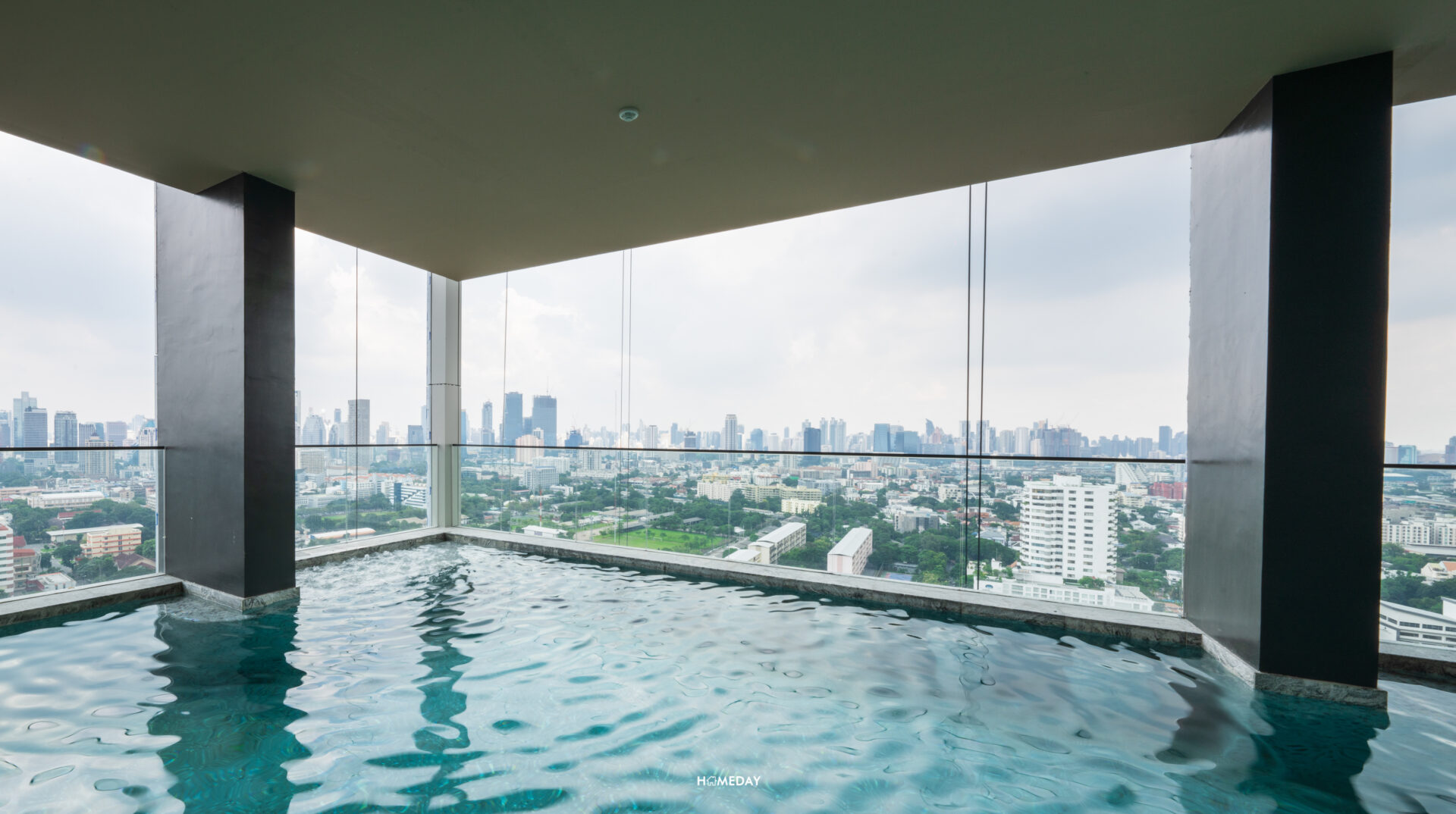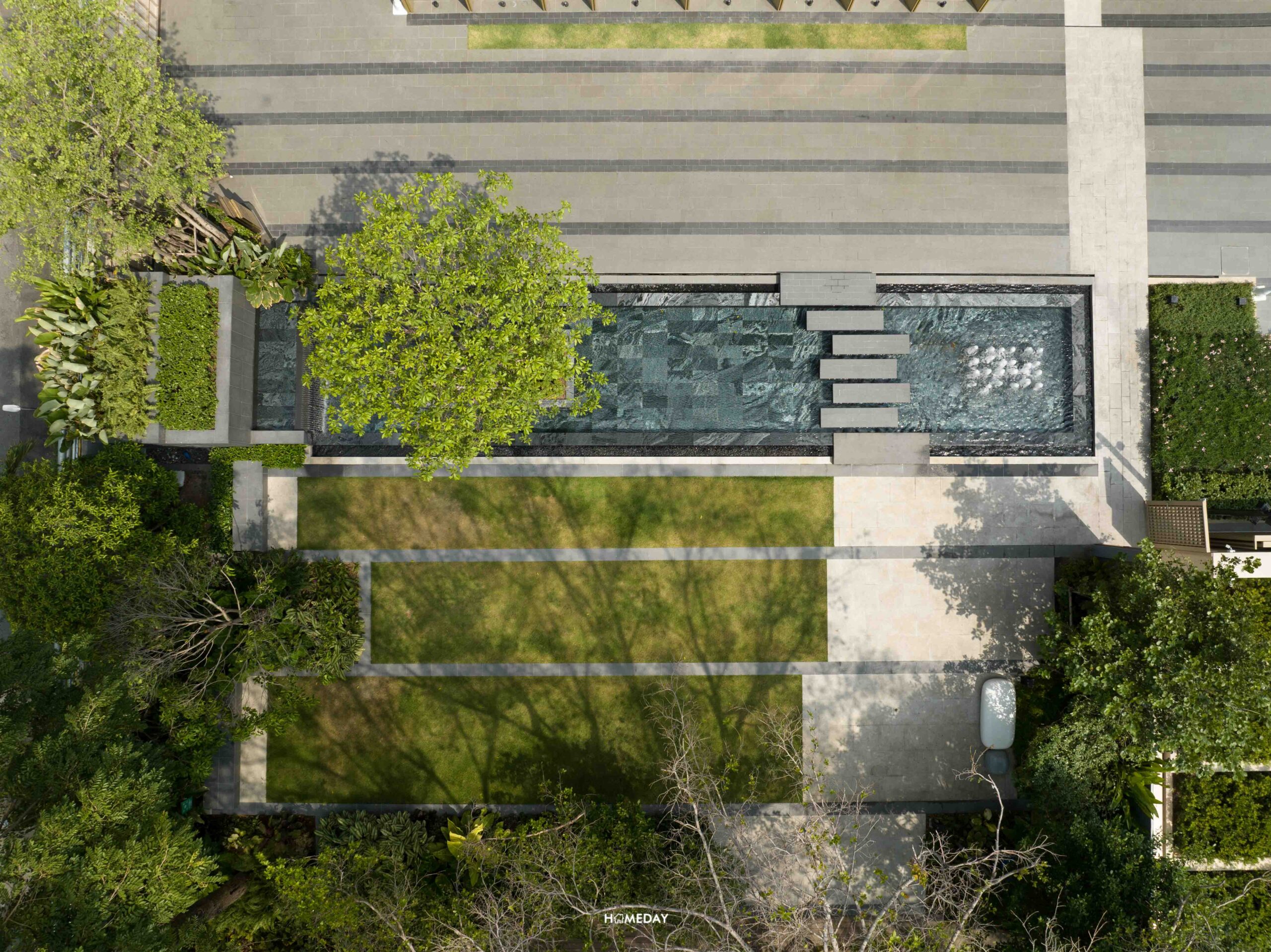 THE WATER ประกอบด้วยสระว่ายน้ำ 2 ส่วน โดยส่วนแรกเป็นสระว่ายน้ำยาว 22 เมตร ช่วยให้คุณได้ดื่มต่ำไปกับวิวแบบพาโนราม่า และยังมี Water jets, Water beds และมีโซนสำหรับเด็กอีกด้วย ส่วนสระที่ 2 เป็นสระน้ำร้อน Hydro Therapy ซึ่งออกแบบเป็นพิเศษ ให้มีน้ำพุและท่อน้ำแรงดันสูง เพื่อช่วยให้คุณได้ผ่อนคลายหลังจากวันที่วุ่นวายในเมือง สวนบนท้องฟ้าตั้งอยู่บริเวณทางทิศใต้ของโครงการ เป็นจุดเชื่อมโยงระหว่างพื้นที่ในส่วนของ The Space และ The Water ตกแต่งด้วยม้านั่งเก๋ ๆ เก้าอี้อาบแดดเท่ ๆ และภูมิทัศน์ ของแม่น้ำเจ้าพระยาและวิวของบางกะเจ้า ทั้งหมดคือบรรยากาศที่จะส่งมอบเพื่อช่วยให้คุณได้ผ่อนคลายกับทุกอิริยาบถที่อยู่ ณ ที่แห่งนี้