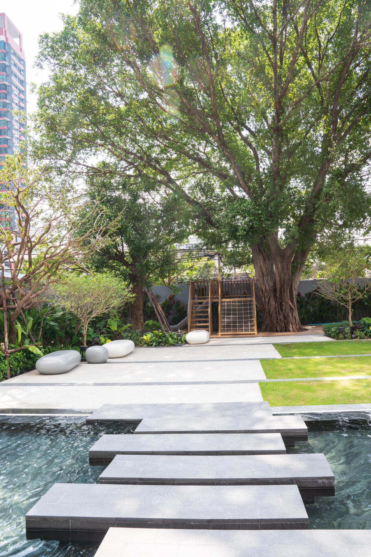 THE PARK ก้าวแรกกับการสัมผัสรรมชาติที่เขียวขจีกว่า 500 ตารางเมตร พร้อมด้วยสนามเด็กเล่น ศาลาสำหรับพักผ่อน และเย็นฉ่ำด้วยสายน้ำที่ทอดยาว ผสมผสานความทันสมัยกับธรรมชาติได้ อย่างลงตัว