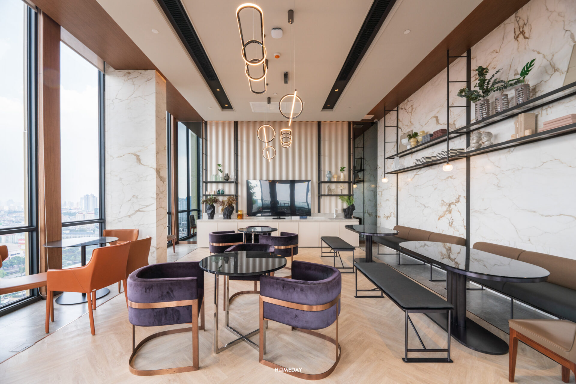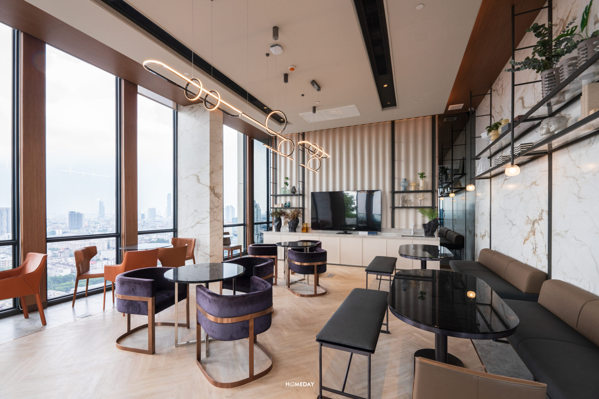 THE SPACE พื้นที่ที่ยืดหยุ่นให้ใช้ได้ทั้งการทำงาน การพักผ่อน การจัดเลี้ยงในโอกาสสำคัญ (กรณีปิดโซนต้องปฎิบัติตามระเบียบของนิติบุคคลอาคาร)