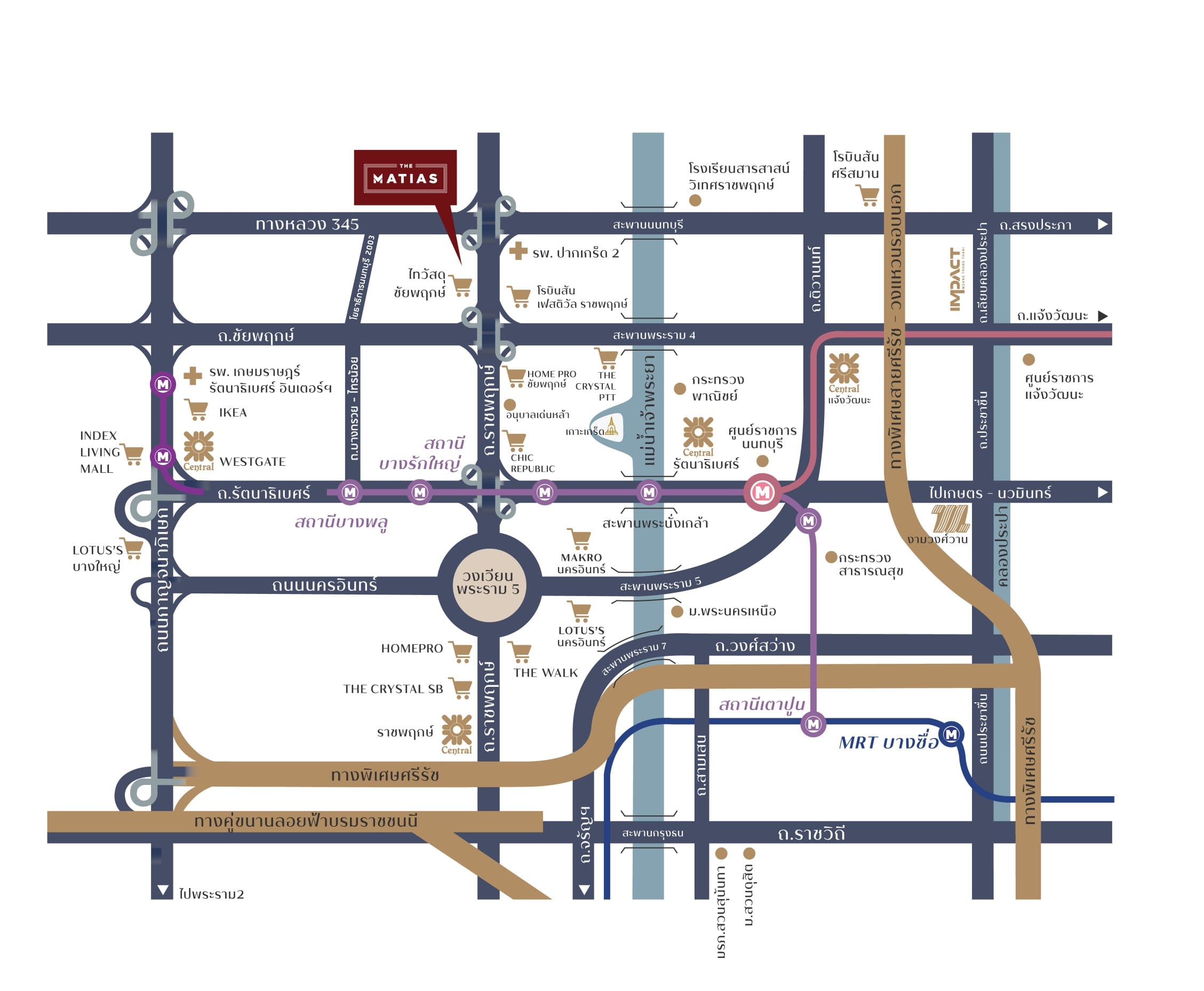 การเดินทาง MRT สถานี พุทธฯ สาย 3 (ในอนาคต)MRT สถานีหลักสอง สถานศึกษาเลิศหล้า เพชรเกษมสารสาสน์วิเทศธนบุรี ห้างสรรพสินค้าวิตอเรียการ์เด้นเดอะมอลล์ บางแค