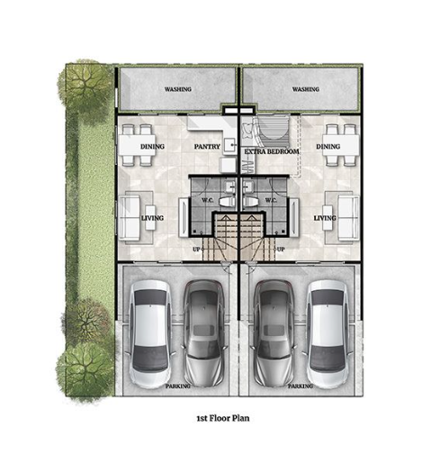 แบบบ้าน : MET 5 Plus พื้นที่ใช้สอย 150 ตร.ม. 4 ห้องนอน 4 ห้องน้ำ 1 ห้องนั่งเล่น 1 ห้องทานข้าว 1 ห้องครัว 2 ที่จอดรถ
