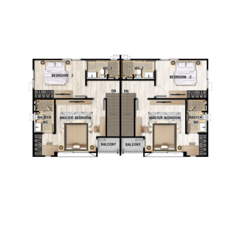 บ้านรุ่นใหม่ดีไซน์โมเดิร์น ฟังก์ชันพิเศษ Double Master Bedroom Suite ห้องนอนขนาดใหญ่พร้อม Walk-in Closet พร้อมห้องนอนด้านล่าง เพื่อความสะดวกในการปรับเปลี่ยนการใช้งานได้หลากหลายยิ่งขึ้น