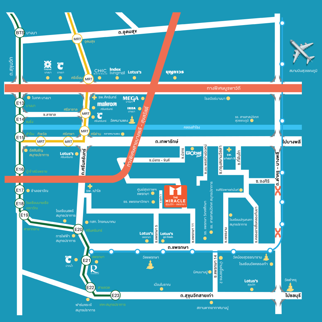 พื้นที่ส่วนกลาง ห้างสรรพสินค้าชั้นนำโรบินสัน สมุทรปราการบิ๊กซี สมุทรปราการเมกะ บางนาโฮมโปร ศรีนครินทร์โลตัส ศรีนครินทร์แจ๊ส เออเบิ้ลแม็คโคร ศรีนครินทร์บิ๊กซี ศรีนคริน