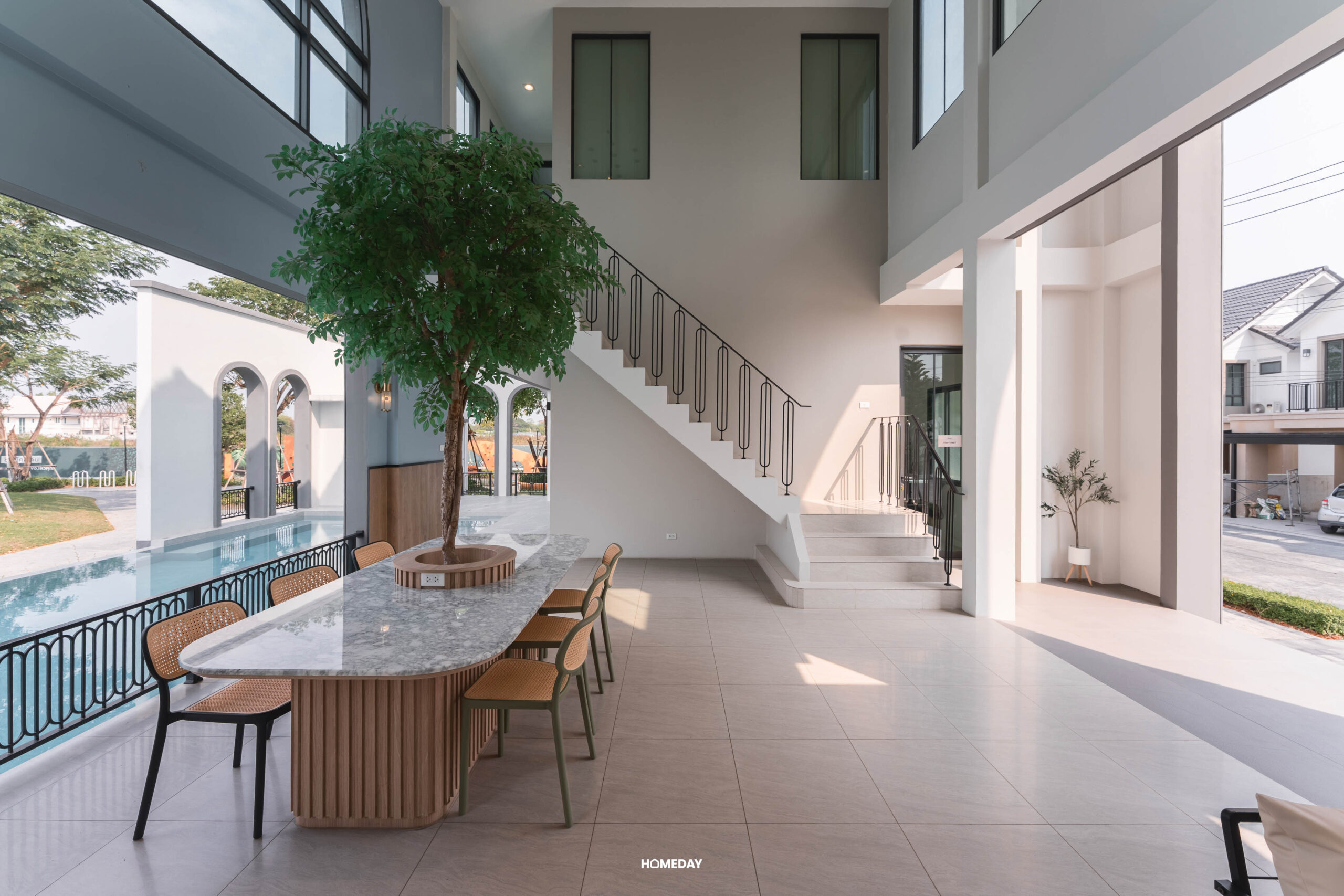 สำหรับ The Plant Club ออกแบบเป็นคลับเฮาส์ขนาดใหญ่ 2 ชั้น พร้อม Grand Lobby โปร่งโล่ง ภายในมี Facilities ครบ ทั้ง Co-Working Space, Fitness, Sauna, Entertainment Room และสระว่ายน้ำระบบเกลือ พร้อมแยกสระเด็กไว้ให้ด้วย ส่วนด้านนอกเชื่อมต่อกับสวนสาธารณะขนาดใหญ่กว่า 1 ไร่ จัดสวนในสไตล์ Modern Country โดดเด่นด้วยการปลูกต้นชมพูพันธุ์ทิพย์ซึ่งเป็นสัญลักษณ์ของจังหวัดนครปฐม ภายในสวนมีพื้นที่กิจกรรมหลากหลาย ทั้ง Edible Garden, Pet Zone, สนามเด็กเล่น, Multi-Sport Area และ Jogging Track รองรับการใช้ชีวิตของลูกบ้านทุกช่วงวัย