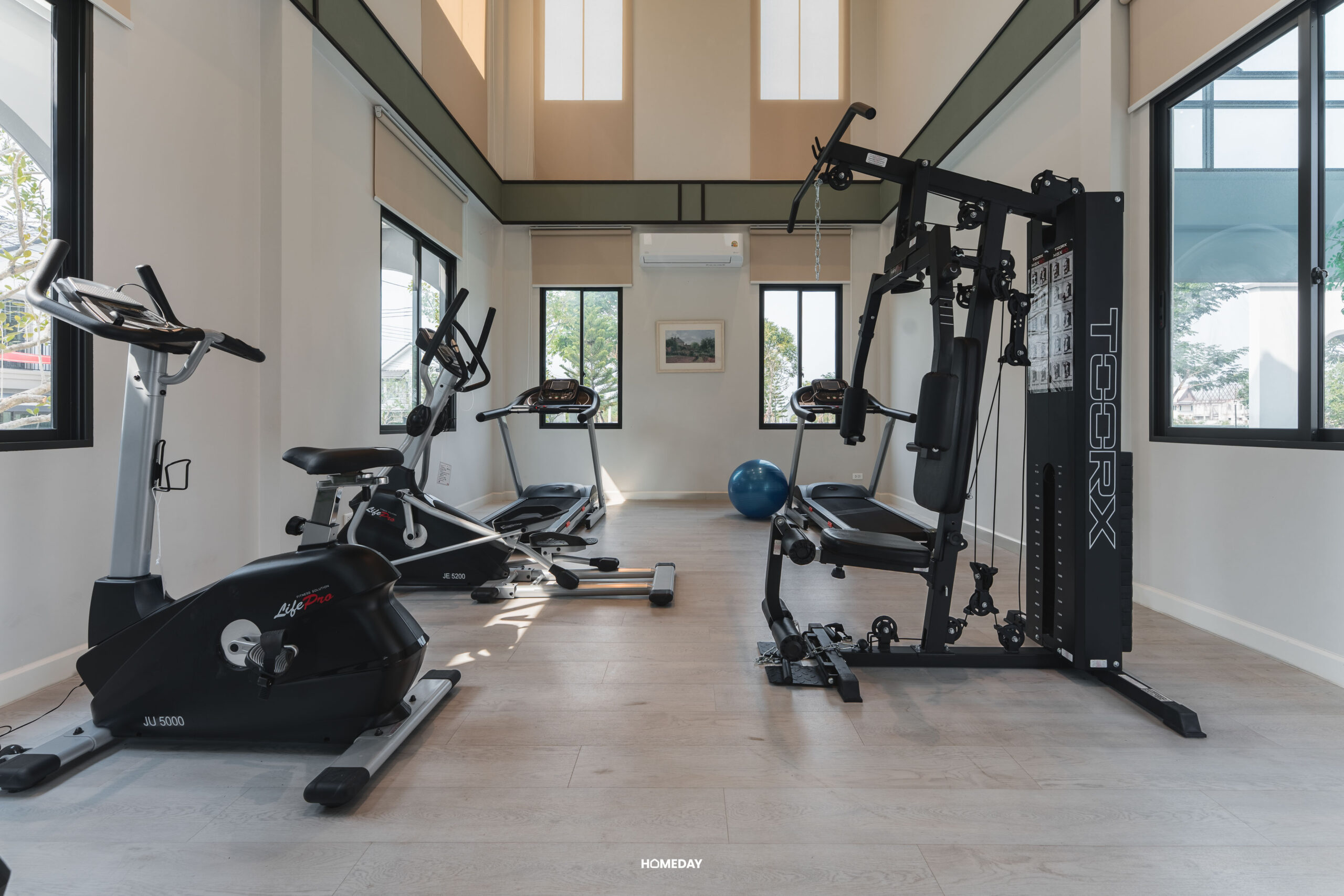 ฝั่งซ้ายมือจะเป็นโซน Fitness Sport Facilities สำหรับออกกำลังกาย ส่วนฝั่งขวามือเป็นบันไดขึ้นไปยังชั้นสอง ซึ่งเป็นที่ตั้งของ Entertainment Room สำหรับใช้ทำกิจกรรมร่วมกันของลูกบ้านครับ