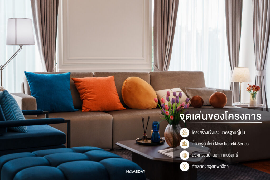 • บ้านหรูรุ่นใหม่ New Kaiteki Series ดีไซน์ใหม่ High Ceiling 3.2 เมตร เปิดรับแสงและอากาศอย่างเต็มที่ เติมความโปร่งโล่งทุกมิติ ผสานความเรียบหรูและฟังก์ชันที่คิดมารอบด้าน ให้ทุกพื้นที่เป็นเอกลักษณ์เฉพาะของ “The Signature Collection”