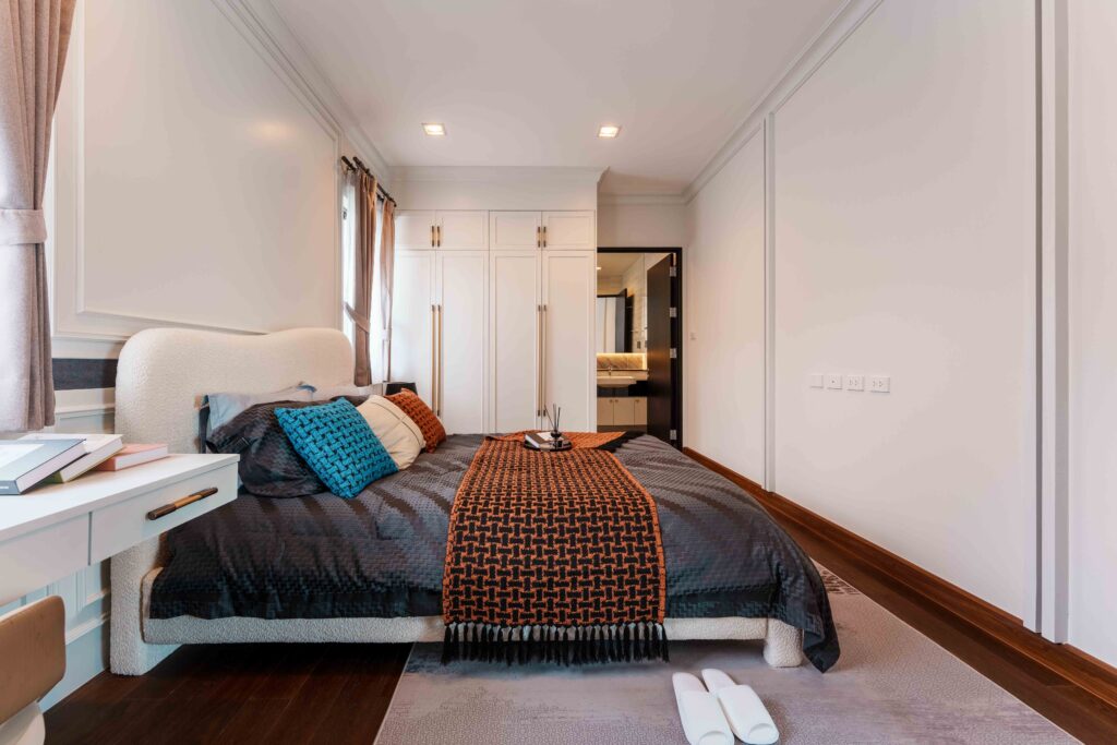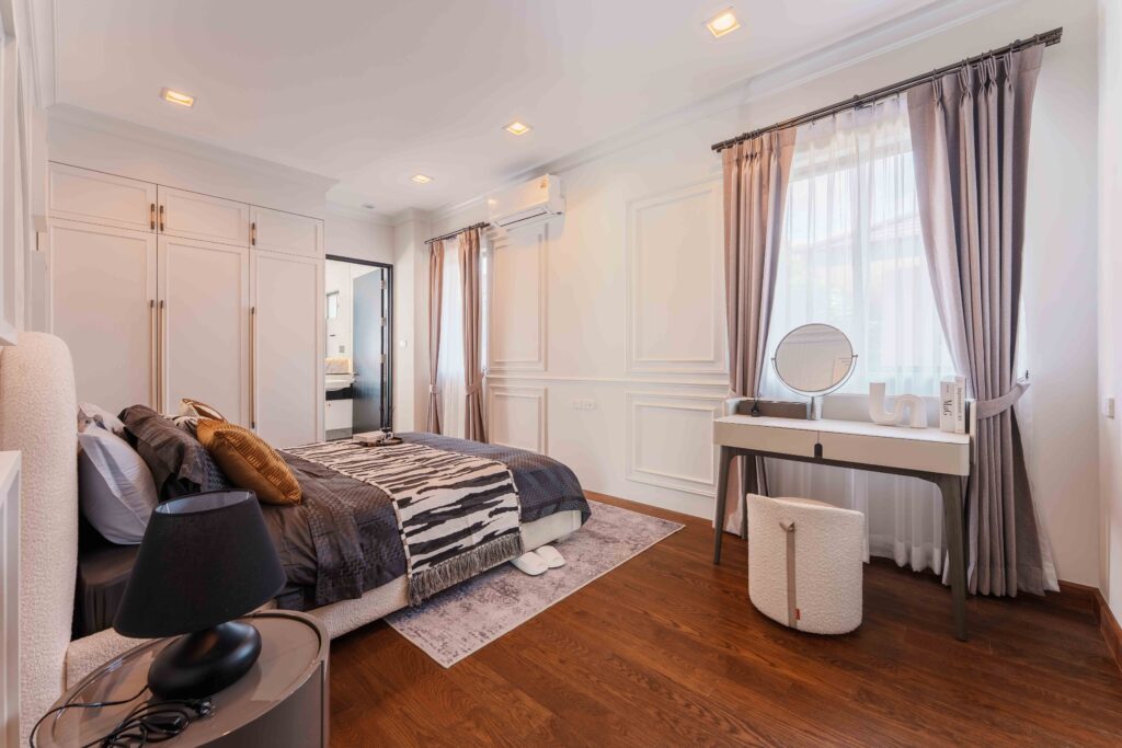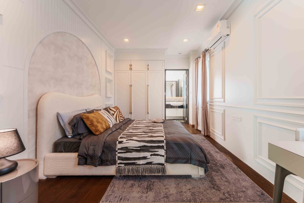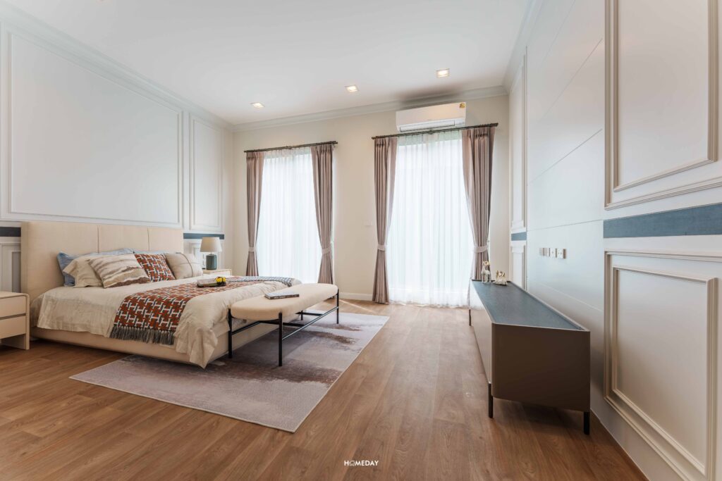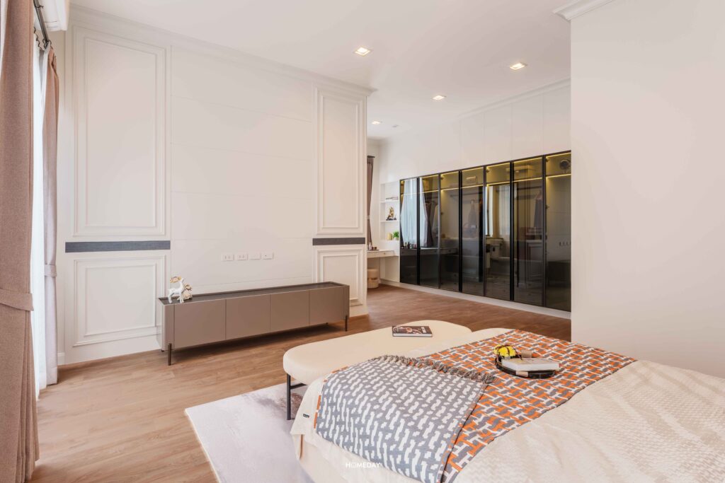 ห้องนี้ได้ฟังก์ชันครบเหมือนห้องอื่น ๆ เลย ตำแหน่งจะอยู่ด้านหลังของตัวบ้าน บรรยากาศค่อนข้างเงียบและเป็นส่วนตัว ภายในสามารถจัดวางเตียงขนาด 5 ฟุต หรือ King Size ก็ได้ตามต้องการ และยังเหลือพื้นที่รอบเตียงให้เดินได้สะดวก มีหน้าต่างบานเลื่อนขนาดใหญ่ ที่เปิดรับแสงธรรมชาติและช่วยระบายอากาศได้ดี ทำให้ห้องดูสว่างตลอดวัน ส่วนด้านในสุดของห้องจะเป็นโซน Walk-in Closet และห้องน้ำส่วนตัวพร้อมใช้งานครบทุกฟังก์ชัน