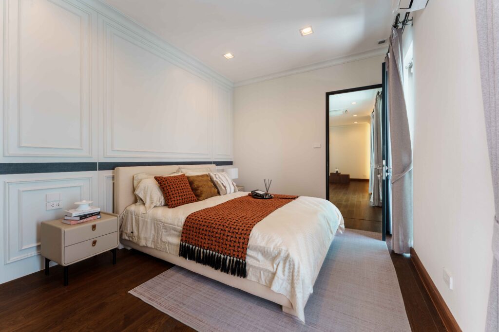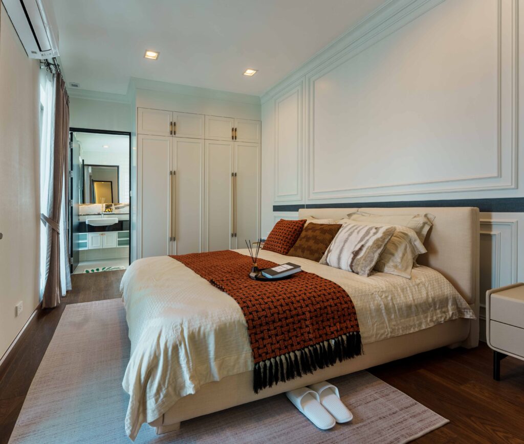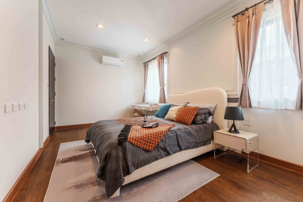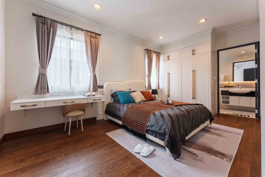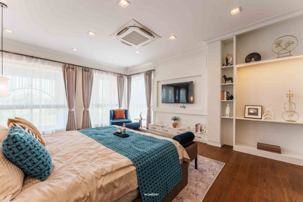 ห้องนี้ได้ฟังก์ชันครบเหมือนห้องอื่น ๆ เลย ตำแหน่งจะอยู่ด้านหลังของตัวบ้าน บรรยากาศค่อนข้างเงียบและเป็นส่วนตัว ภายในสามารถจัดวางเตียงขนาด 5 ฟุต หรือ King Size ก็ได้ตามต้องการ และยังเหลือพื้นที่รอบเตียงให้เดินได้สะดวก มีหน้าต่างบานเลื่อนขนาดใหญ่ ที่เปิดรับแสงธรรมชาติและช่วยระบายอากาศได้ดี ทำให้ห้องดูสว่างตลอดวัน ส่วนด้านในสุดของห้องจะเป็นโซน Walk-in Closet และห้องน้ำส่วนตัวพร้อมใช้งานครบทุกฟังก์ชัน