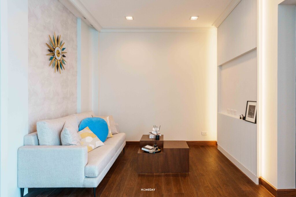 Family Area ตรงนี้เป็นอีกมุมที่อบอุ่นมากครับ เหมาะสำหรับใช้เป็นพื้นที่พักผ่อนของทุกคนในบ้าน จะจัดเป็นมุมอ่านหนังสือเล็ก ๆ หรือ ห้องเกมรูม สำหรับเล่นบอร์ดเกมกับครอบครัวก็ได้ ในบ้านตัวอย่างเค้าจัดเป็นห้องนั่งเล่นพักผ่อน วางโซฟาขนาด 2-3 ที่นั่ง พร้อมโต๊ะกลาง ดูพอดีกับพื้นที่เลยครับ ระยะดูทีวีก็กำลังดี เหมาะจะเป็นมุมที่ทุกคนมานั่งคุยก่อนนอน หรือจิบกาแฟเบา ๆ ยามเช้าก่อนไปทำงาน เป็นมุมเล็ก ๆ ที่เพิ่มความอบอุ่นให้ชั้นบนได้ดีจริง ๆ ครับ