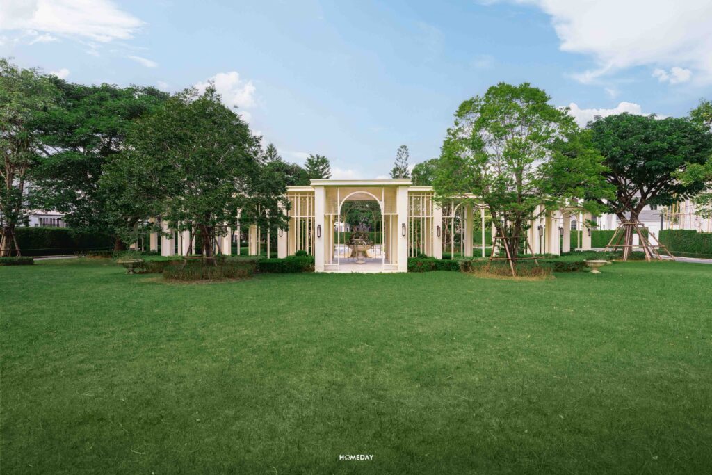 ภายในโครงการยังมีพื้นที่สีเขียวขนาดใหญ่ที่จัดไว้ให้ลูกบ้านได้ใช้พักผ่อนกันครับ เป็นสวนส่วนกลางตรงกลางโครงการ บรรยากาศร่มรื่นจากต้นไม้ใหญ่และแนวไม้พุ่มที่ปลูกล้อมรอบ มี Jogging Track เหมาะสำหรับการ เดิน วิ่งเบา ๆ หรือพาเด็ก ๆ มาเล่นที่สนามหญ้าในตอนเย็นได้ ตรงกลางของสวนยังมี Pavilion สำหรับนั่งพักผ่อนใต้ร่มไม้ หลบร้อนได้ครับ