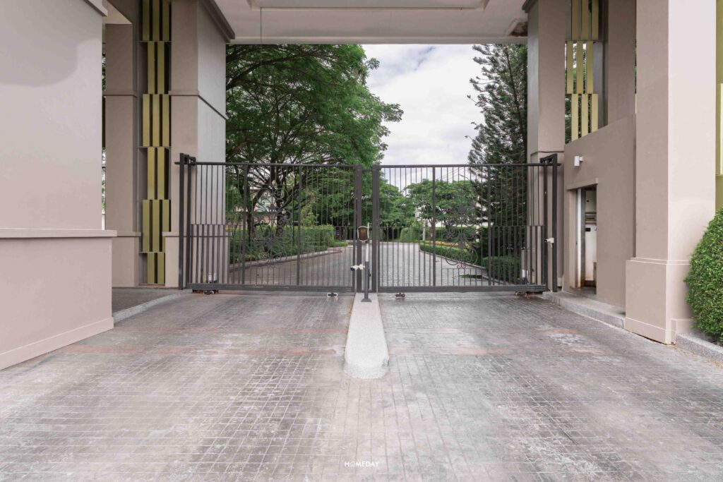 ซุ้มทางเข้าโครงการ แยกช่องทางเข้า-ออก และแยกใส่วนของลูกบ้าน กับ ผู้มาติดต่อ กั้นด้วยรั้วเลื่อนอัตโนมัติ ควบคุมการเข้า-ออกของลูกบ้านด้วย Keycard Access แค่แตะก็ผ่านได้เลย ส่วนผู้มาติดต่อจะต้องแลกบัตรกับเจ้าหน้าที่ทุกครั้งเพื่อความปลอดภัย ที่นี่ใช้ระบบรักษาความปลอดภัยมาตรฐานระดับโลกจาก SECOM ตลอด 24 ชั่วโมง ทั้งสะดวกและอุ่นใจครับ