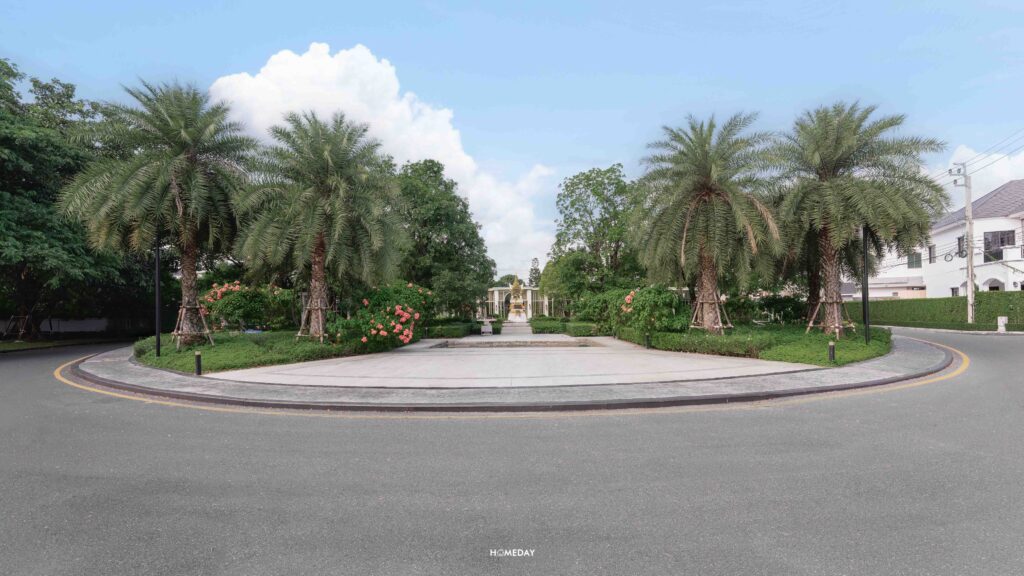ตรงเข้ามาภายในโครงการจะเจอกับถนนเมนกว้างขวาง บรรยากาศร่มรื่นด้วยต้นไม้ใหญ่ตลอดสองข้างทาง ล้อมด้วยไม้พุ่มและไม้ดอกสีเขียวสบายตา พื้นที่ส่วนกลางอีกส่วนหนึ่งที่เป็นคอมมูนิตี้หลักจริง ๆ จะอยู่หน้าโครงการครับ เป็นคลับเฮาส์ขนาดใหญ่ มีสระว่ายน้ำ และ ฟิตเนสเซ็นเตอร์ ซึ่งโครงการวางแผนสร้างแล้วเสร็จประมาณ Q4 ปี 2026 ครับ